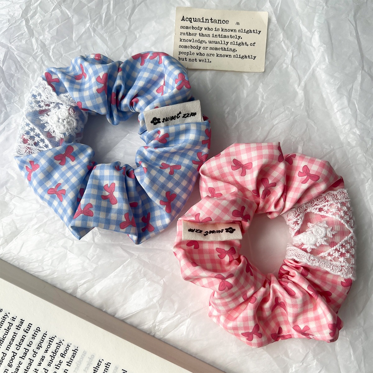 韩式甜美蝴蝶结蕾丝拼接头绳发饰女高级感手工布艺大肠发圈