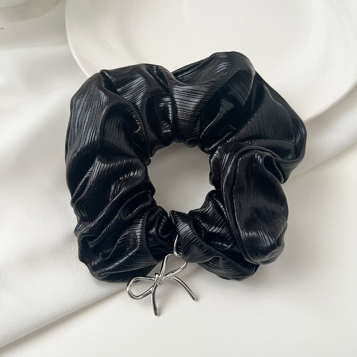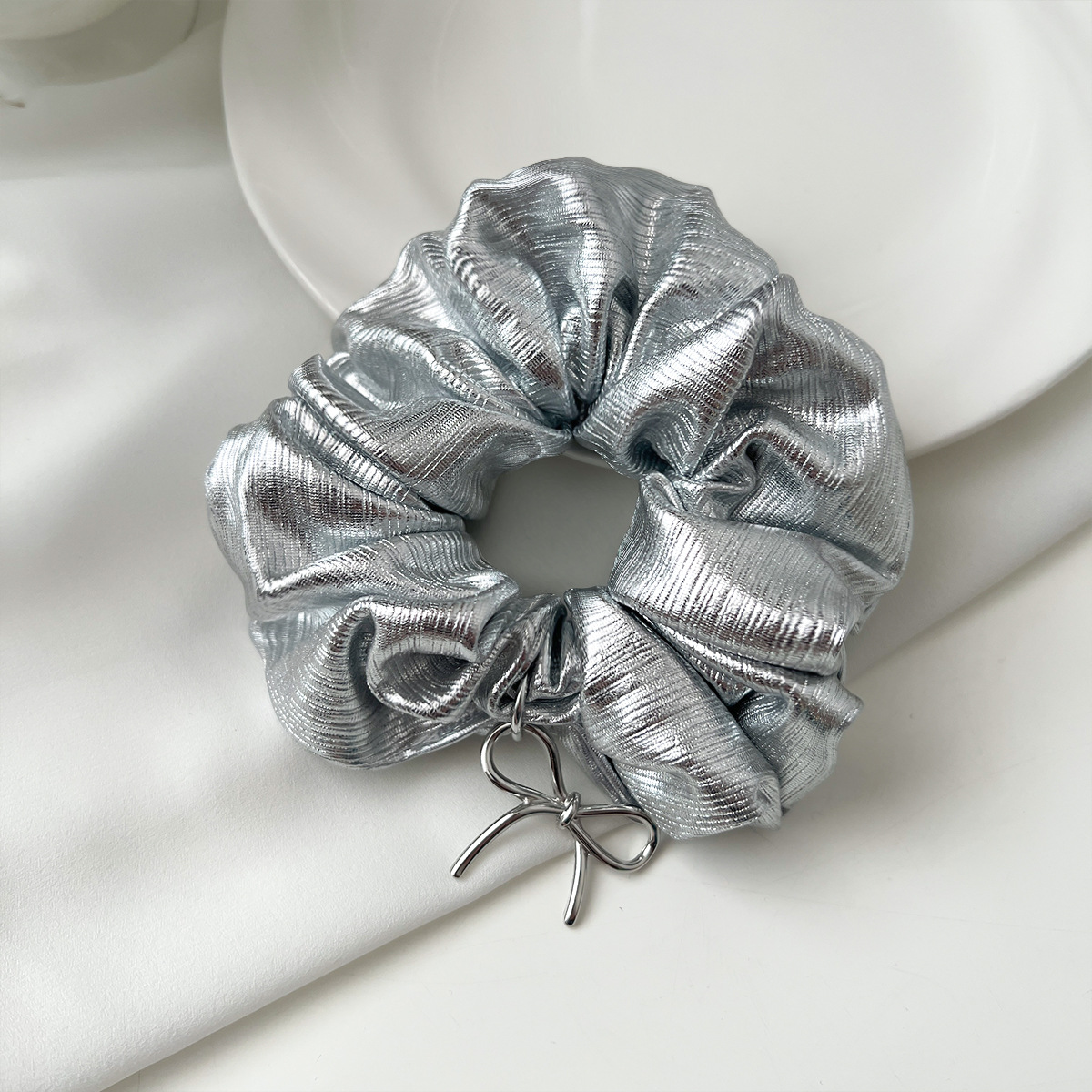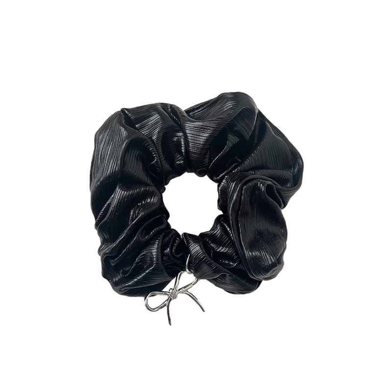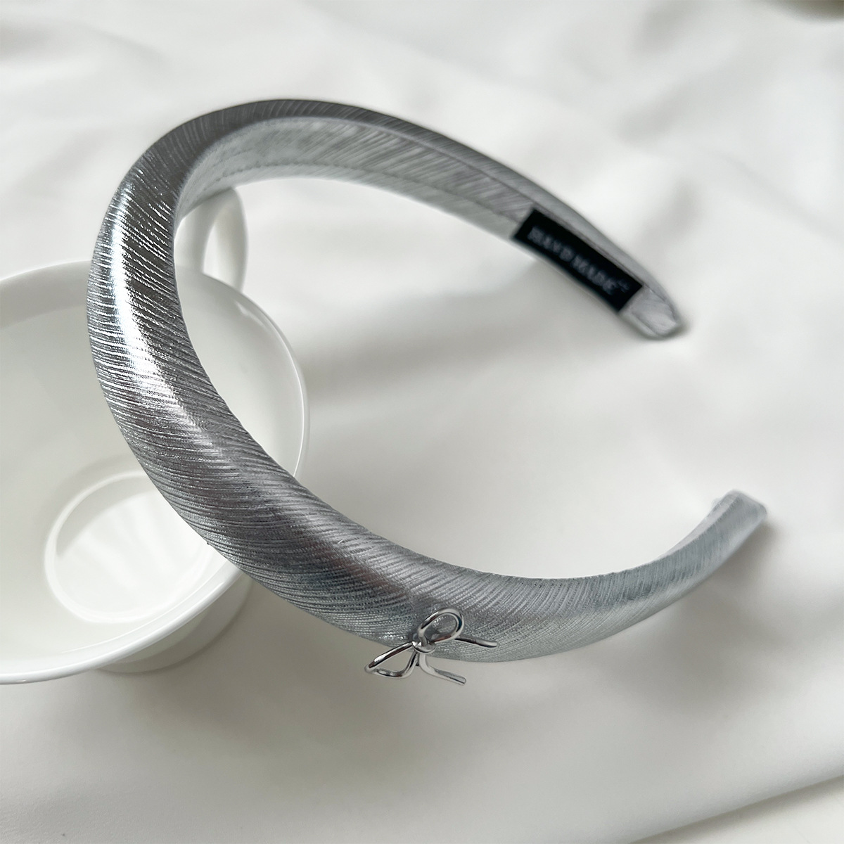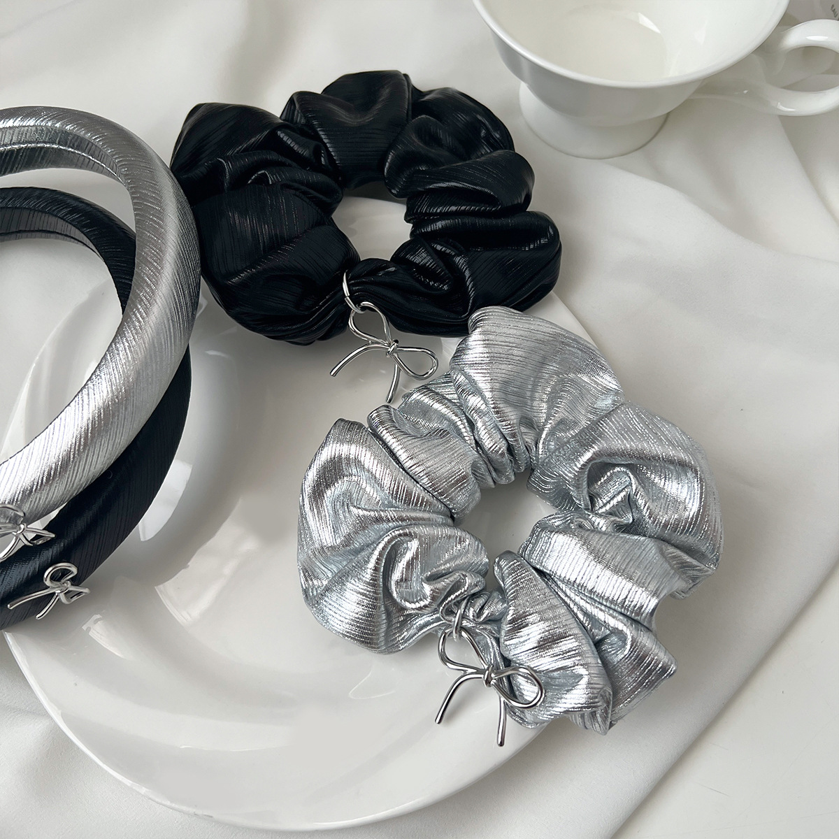 韩式高级金属感气质头发箍头绳银色皮质甜美高颅顶大肠发圈