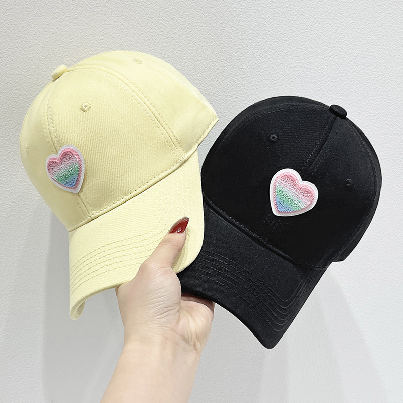 新款贴布彩色爱心棒球帽女韩系鸭舌帽百搭水洗鸭舌帽夏季遮阳帽潮