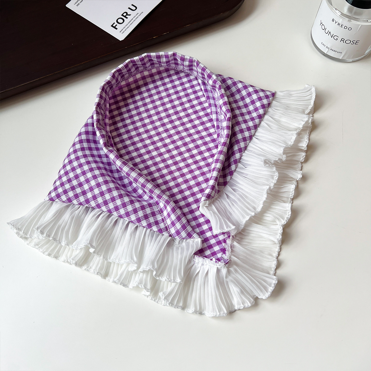 法式气质蕾丝格子发箍发饰女新款百搭田园风高级感三角头巾