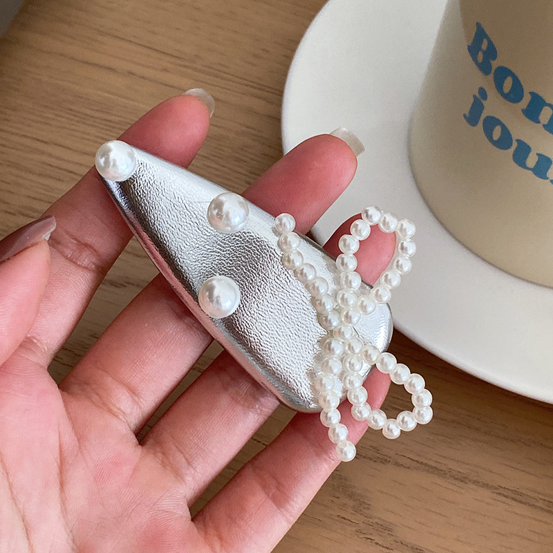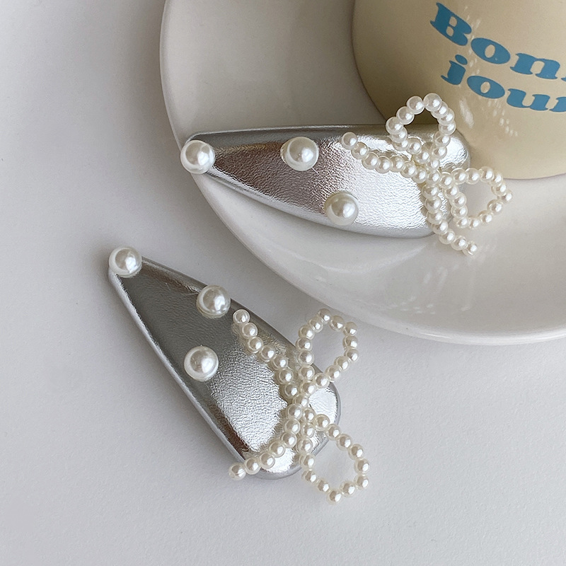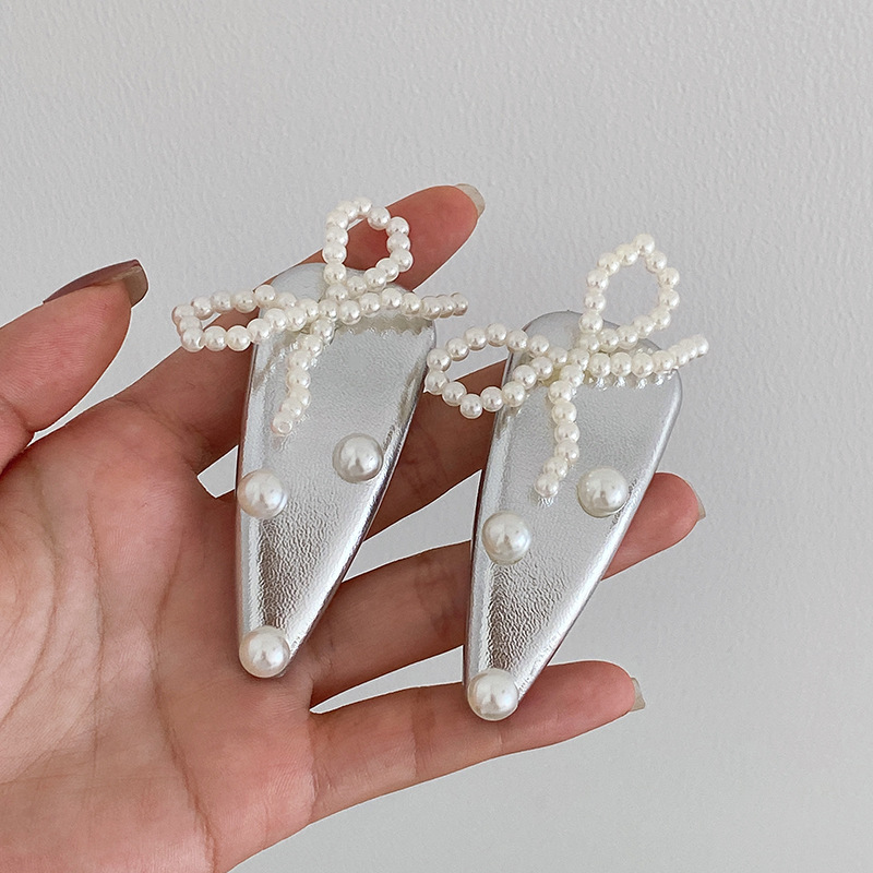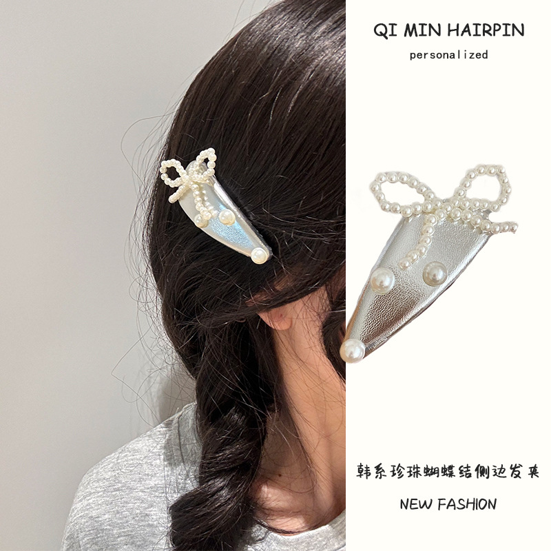 韩系珍珠蝴蝶结感侧边刘海发夹女前额头饰新款bb夹发卡