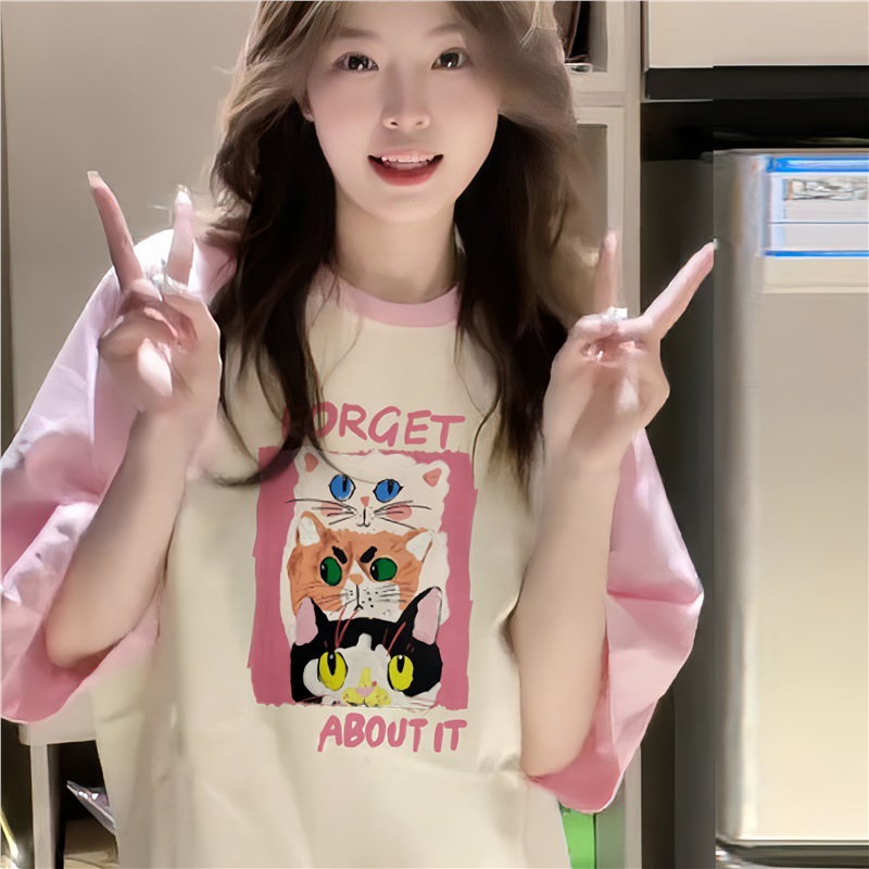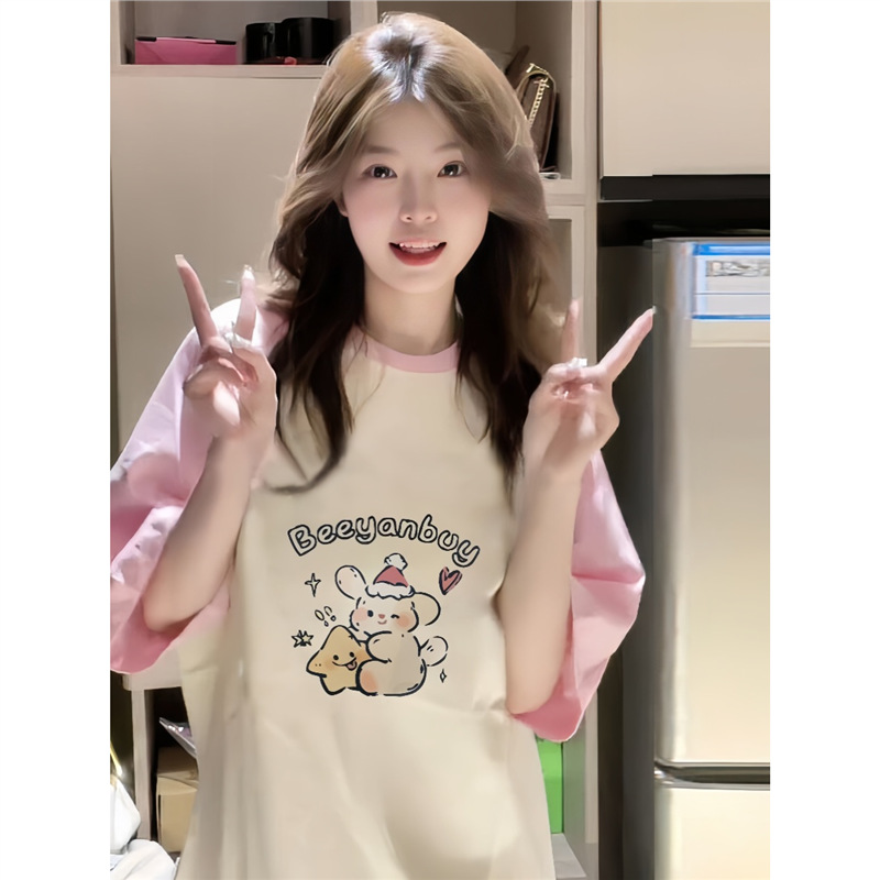200斤纯棉粉色插肩短袖t恤闺蜜装夏季女大学生多巴胺宽松显瘦上衣