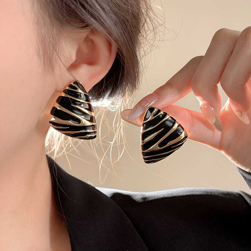 黑金斑马纹复古耳钉女轻奢高级感夸张大耳环新款爆款独特耳饰
