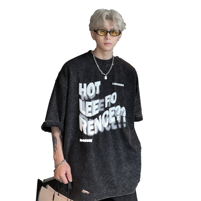 重磅230克复古水洗短袖T恤男士夏季印花新款上衣美式高街嘻哈衣服