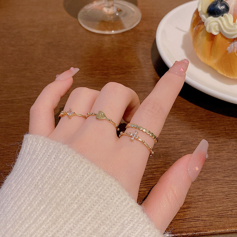 四件套十字架爱心套装戒指女小众高级感轻奢锆石指环戒开口手饰品
