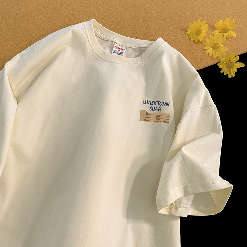 百搭休闲小熊印花纯棉短袖T恤女夏季别致舒适打底衫宽松减龄上衣