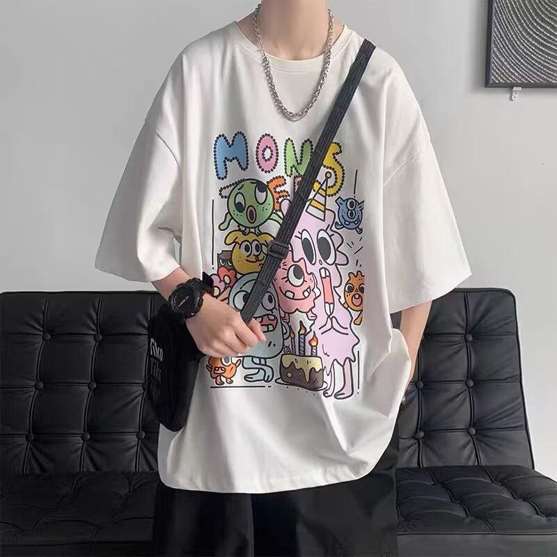 日系短袖t恤男夏季新款潮牌ins港风宽松情侣装设计感小众半袖上衣