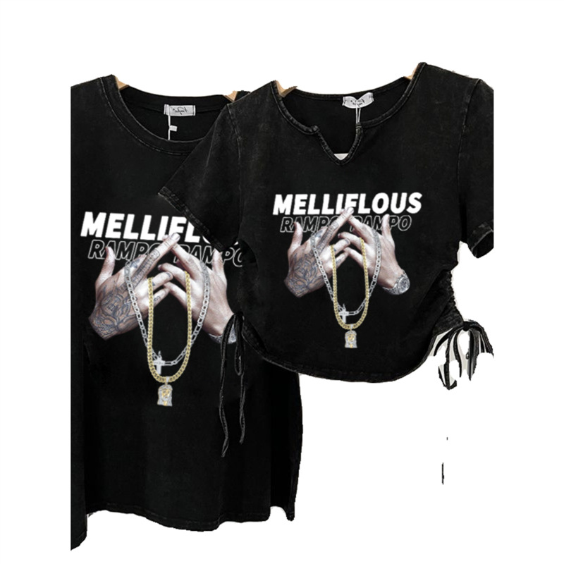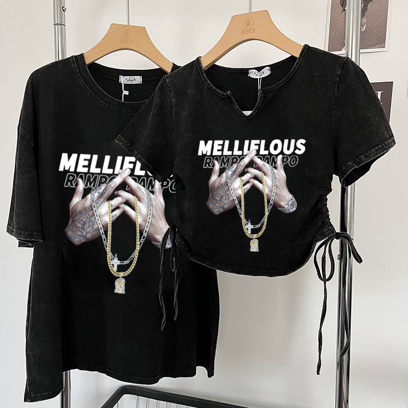 水洗做旧纯棉短袖t恤男女春夏嘻哈hiphop拽酷炸街美式中长款体恤