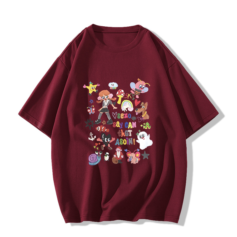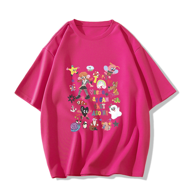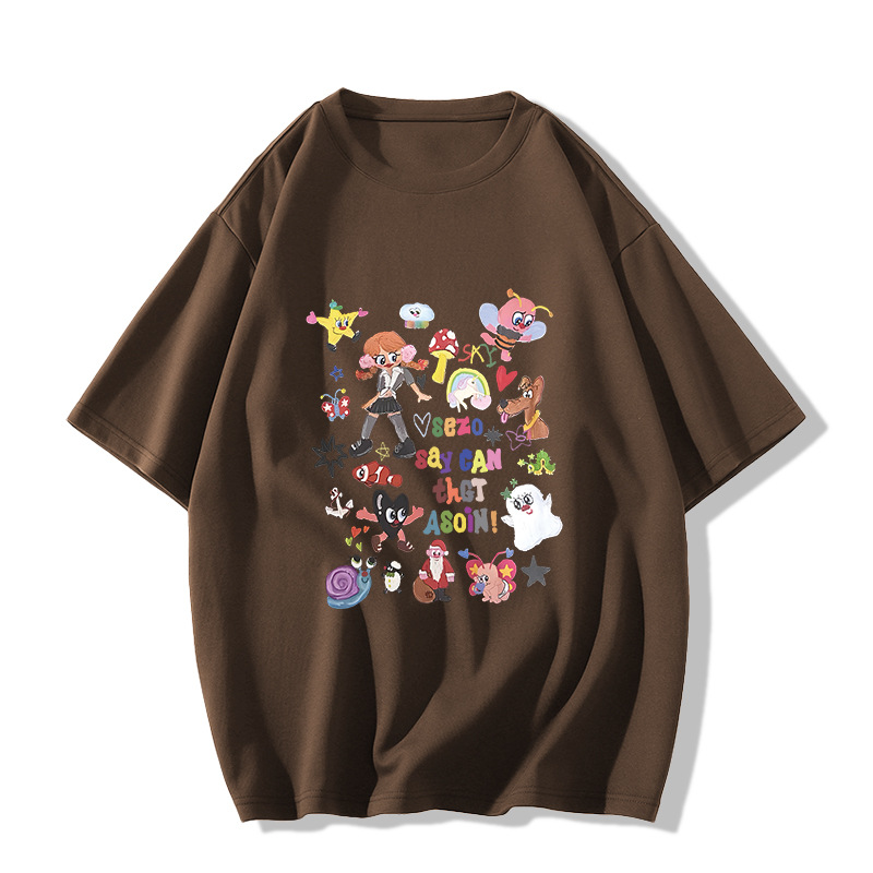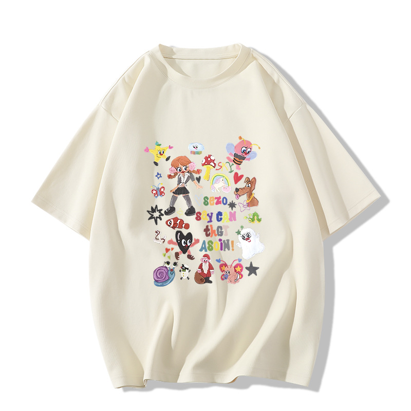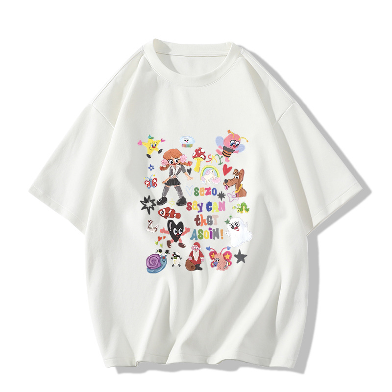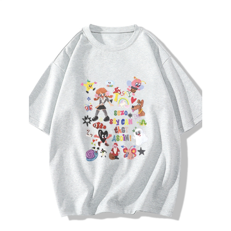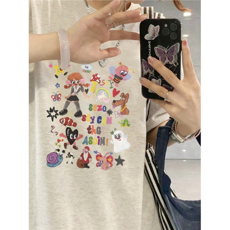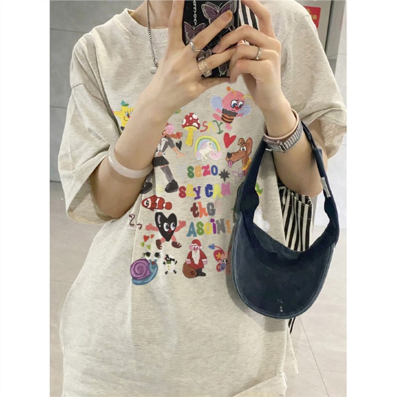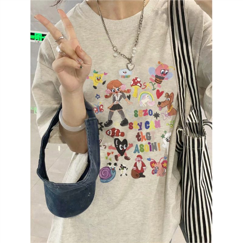 复古短袖t恤女春新款爆款趣味彩色印花慵懒宽松显瘦美式上衣