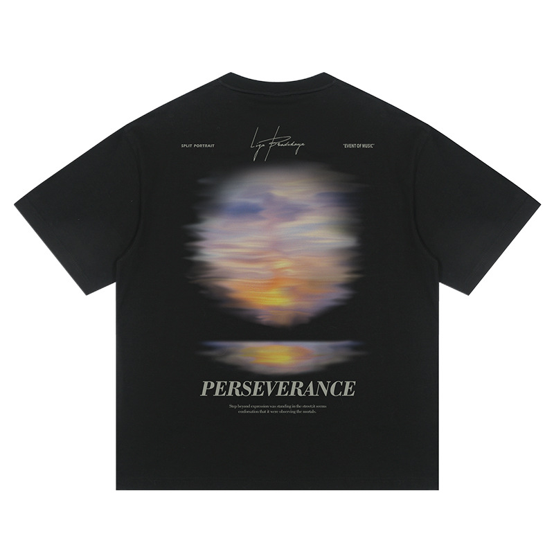 美式复古日落短袖T恤男女夏季宽松情侣半袖
