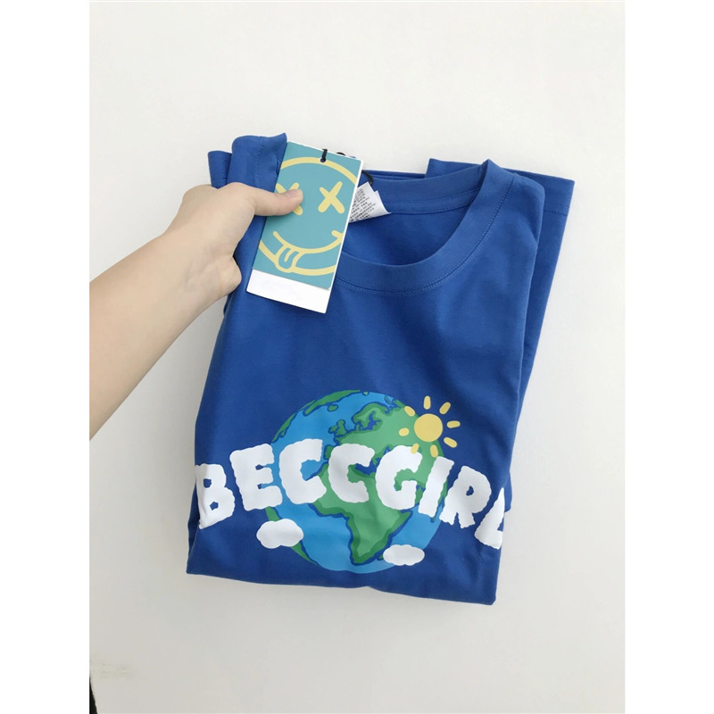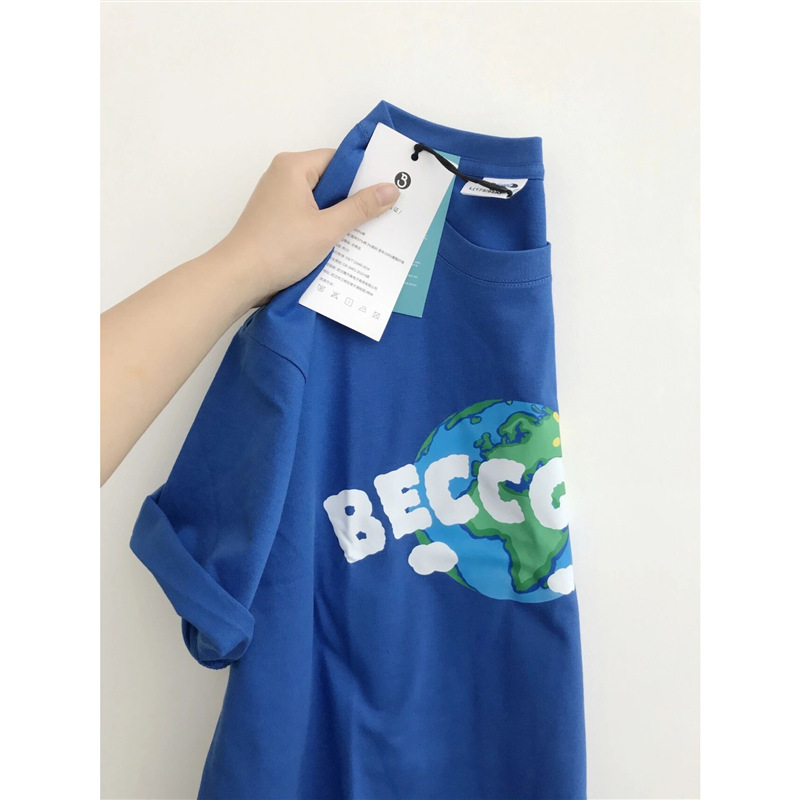 克莱因蓝纯棉短袖t恤女夏季宽松200斤特大码胖mm洋气设计感上衣潮