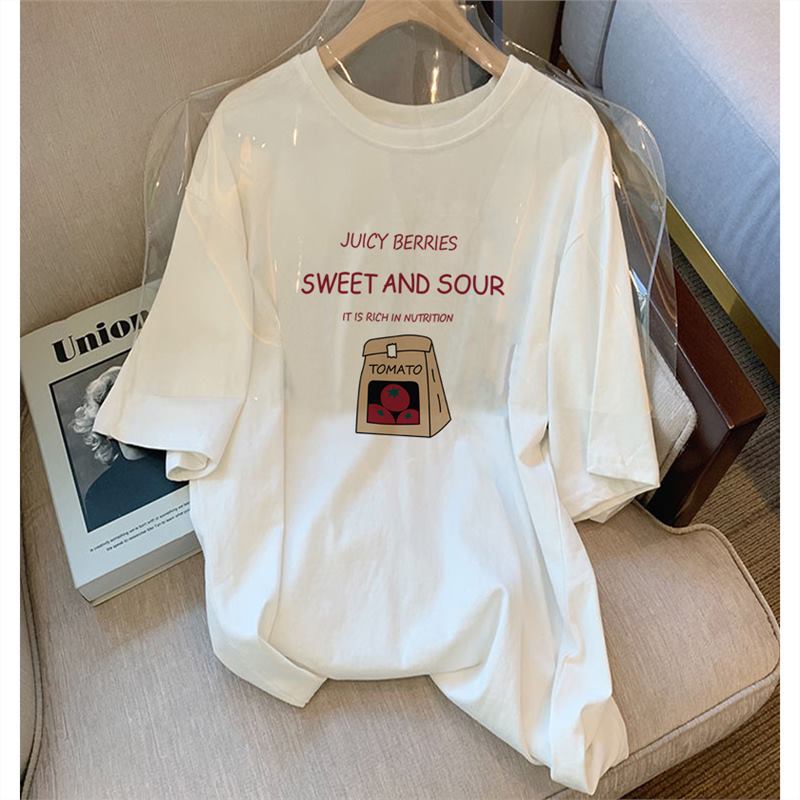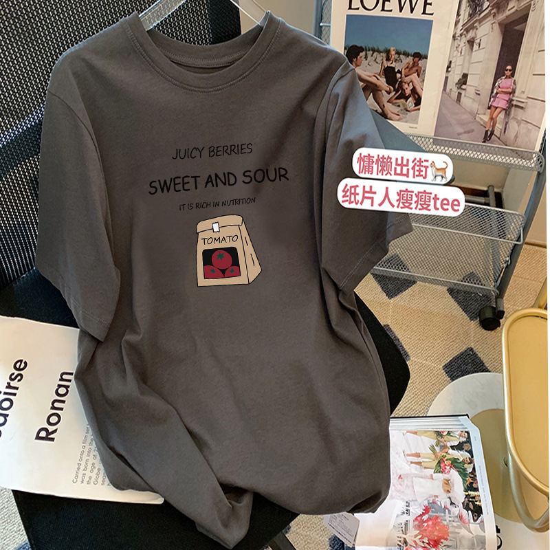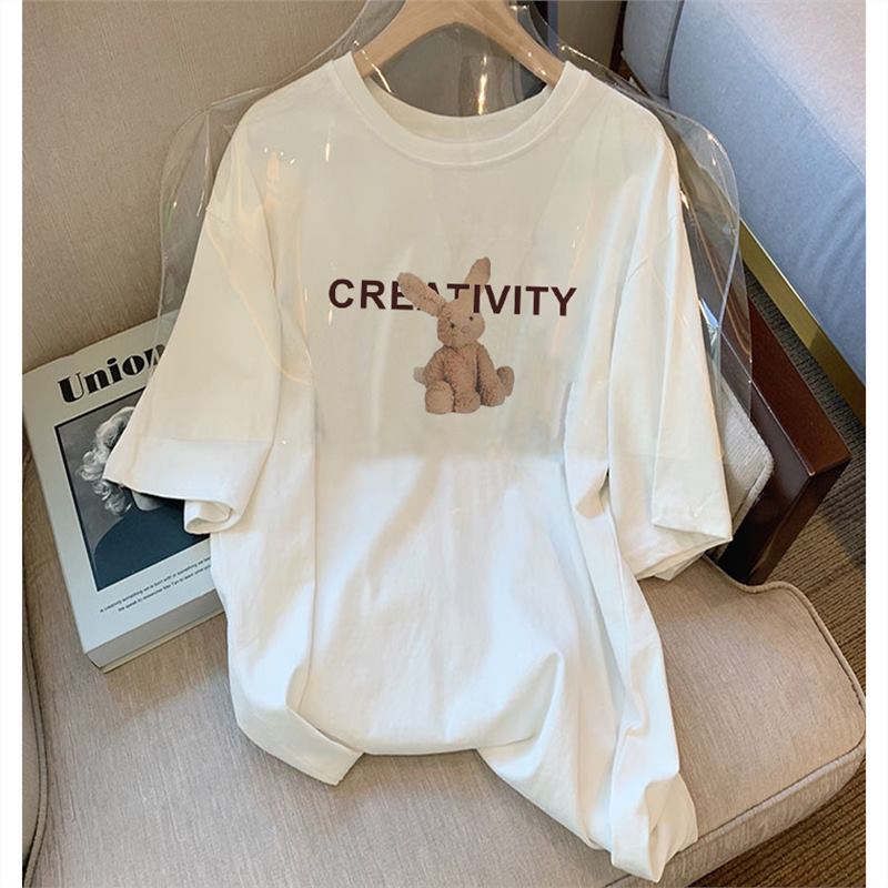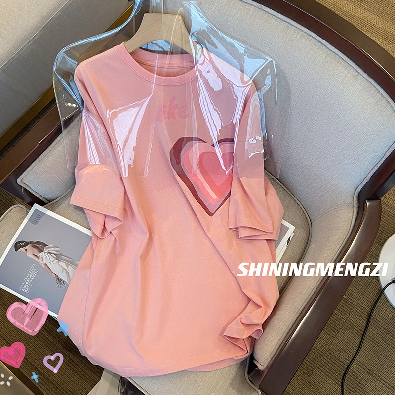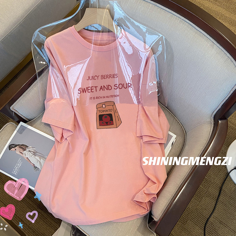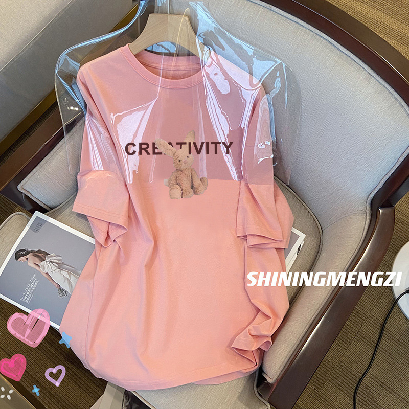 纯棉短袖T恤女韩版宽松大尺码中长版简约时尚百搭打底上衣夏