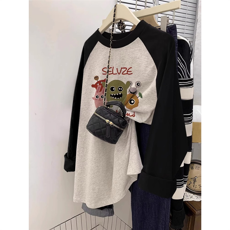 - 黑拼白灰-七彩怪兽长袖