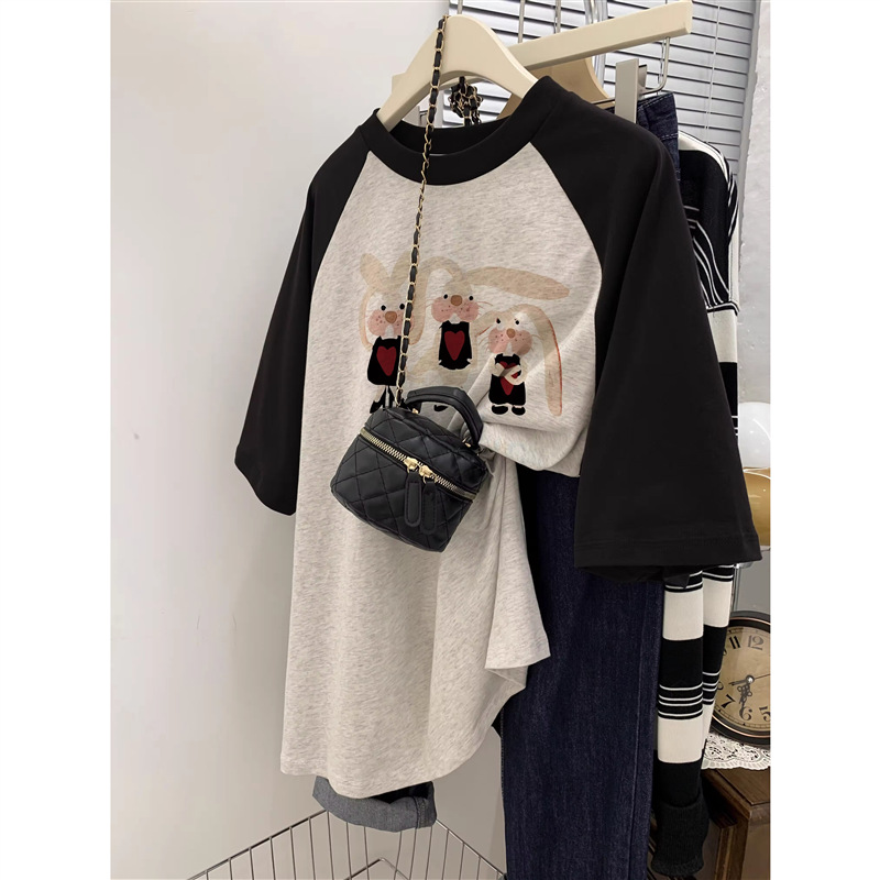- 黑拼白灰-线条兔子长袖