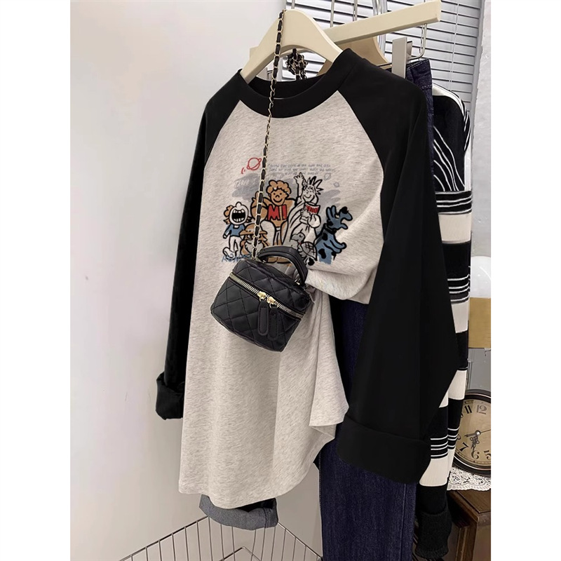 - 黑拼白灰-绿帽子唐老鸭长袖