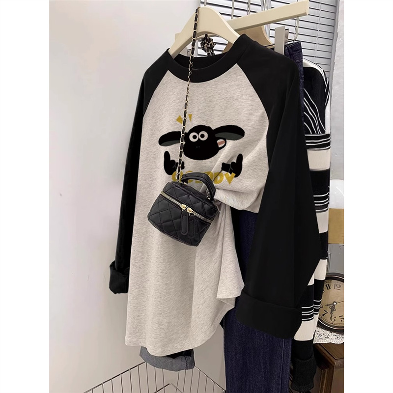 - 黑拼白灰-q字母羊长袖