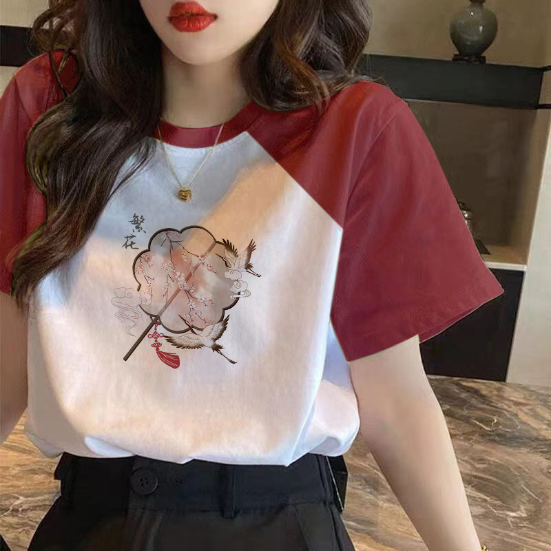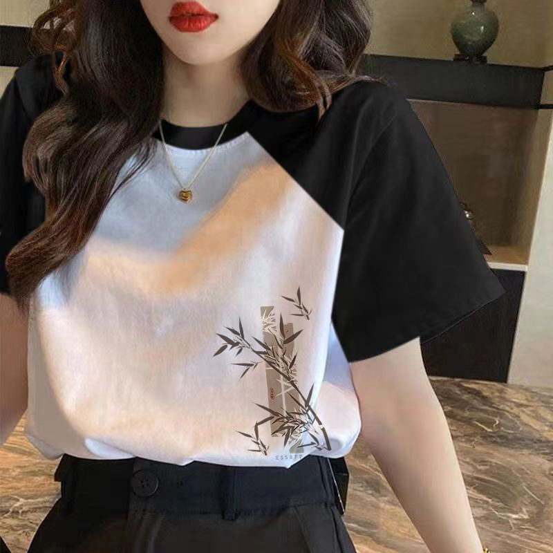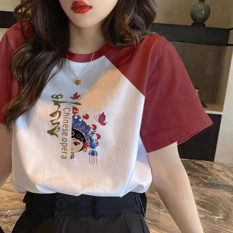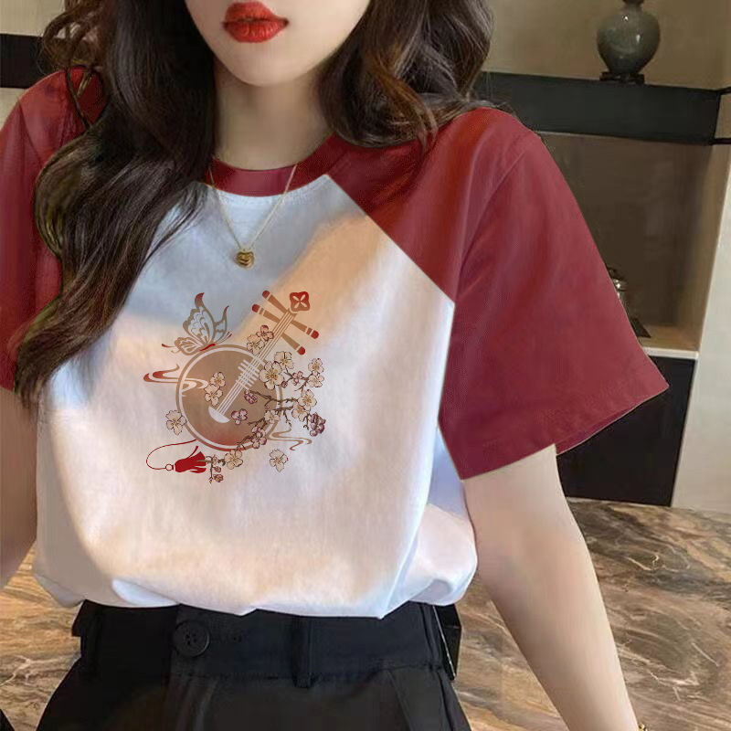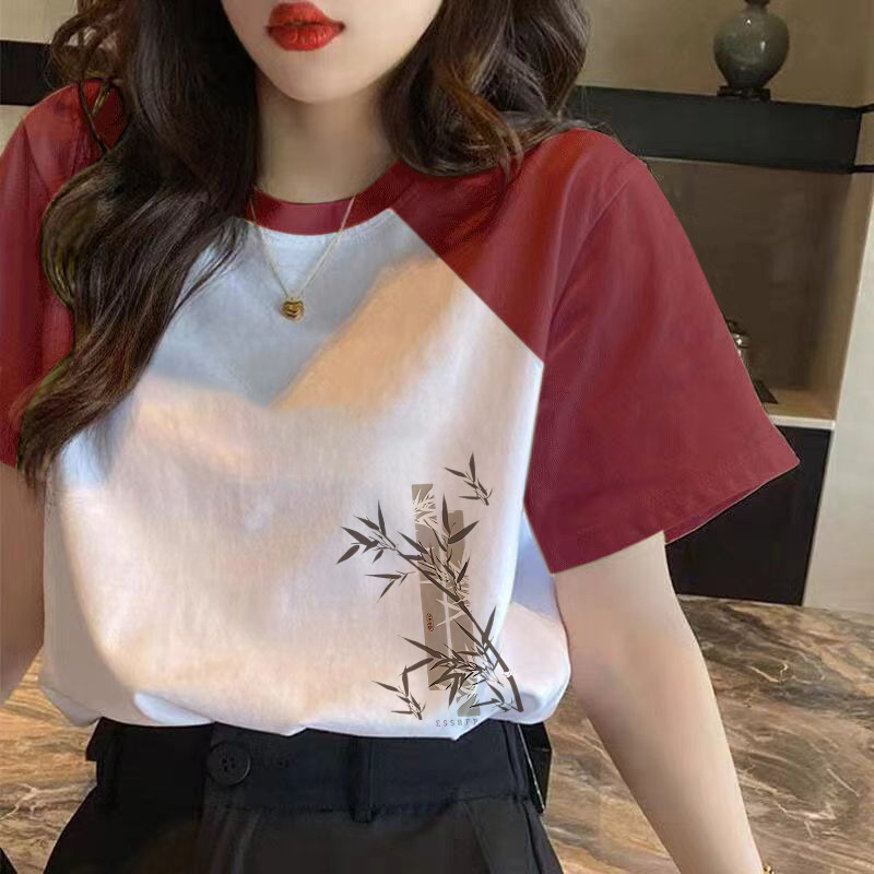 夏季新款新中式国风短袖女纯棉插肩t恤半袖撞色高级感上衣服