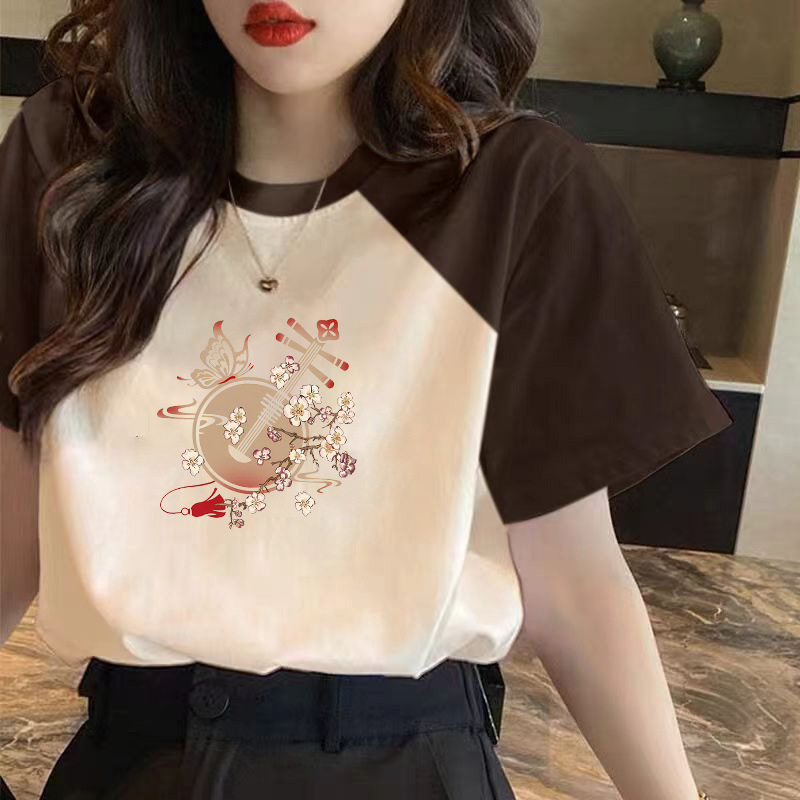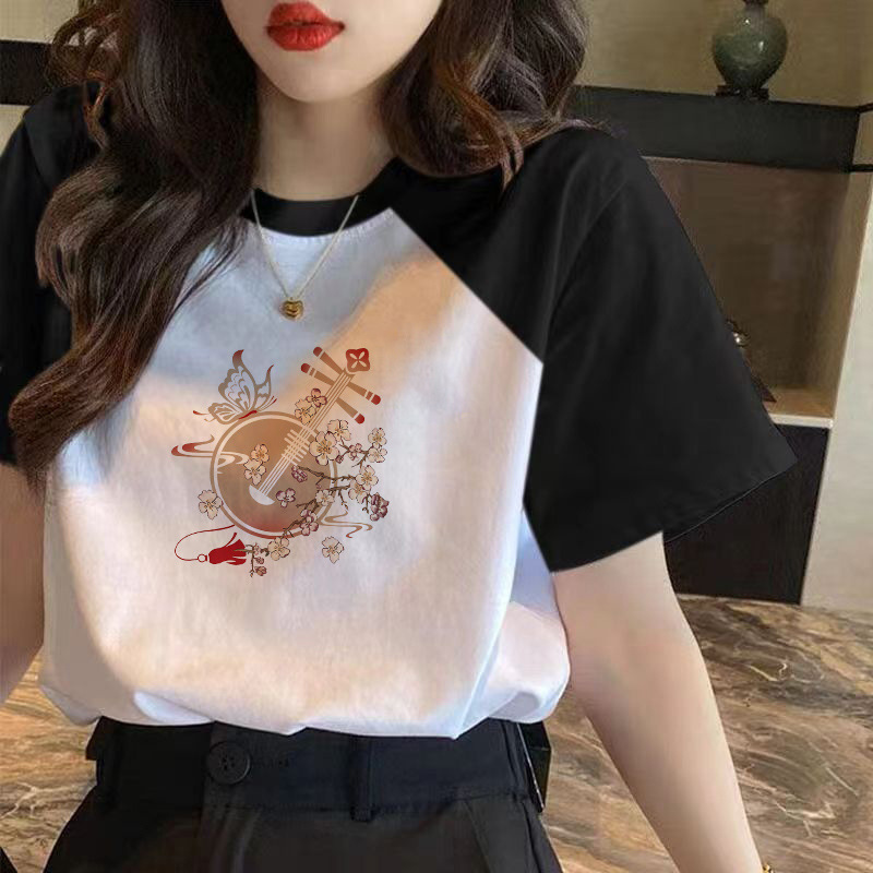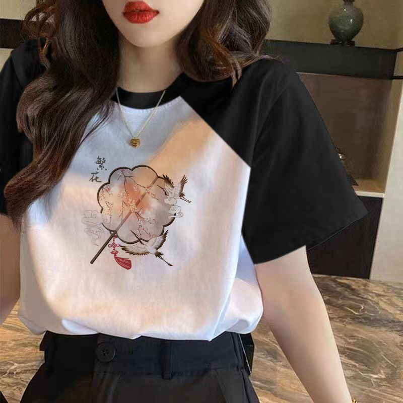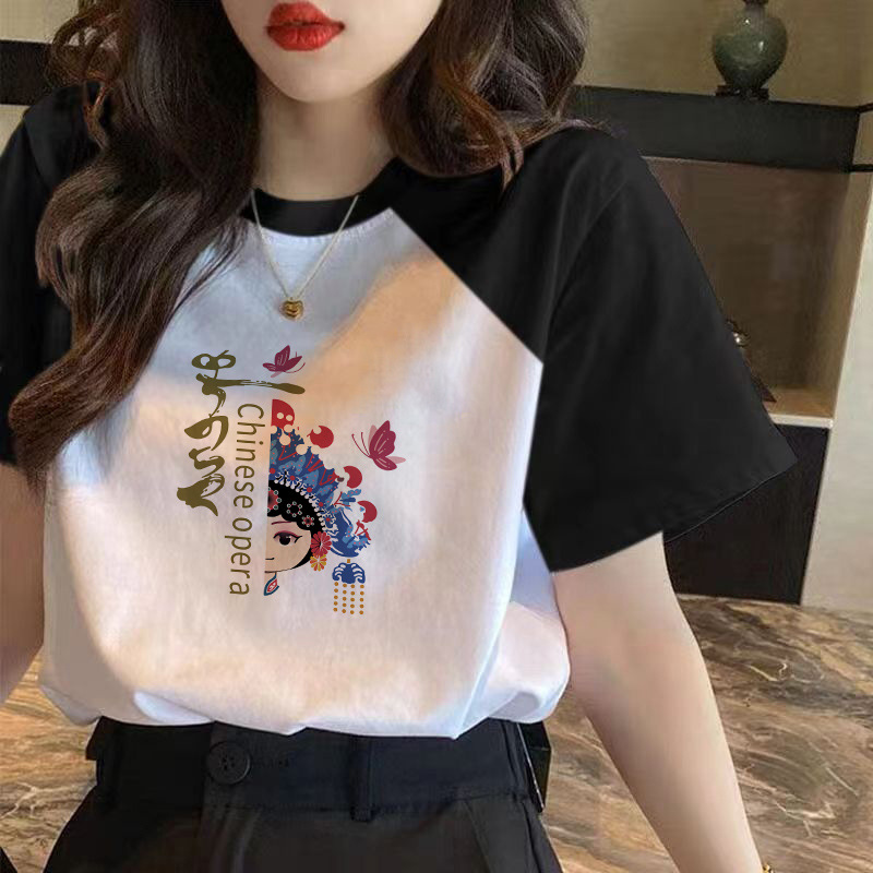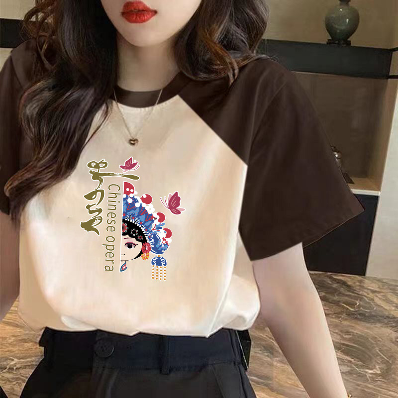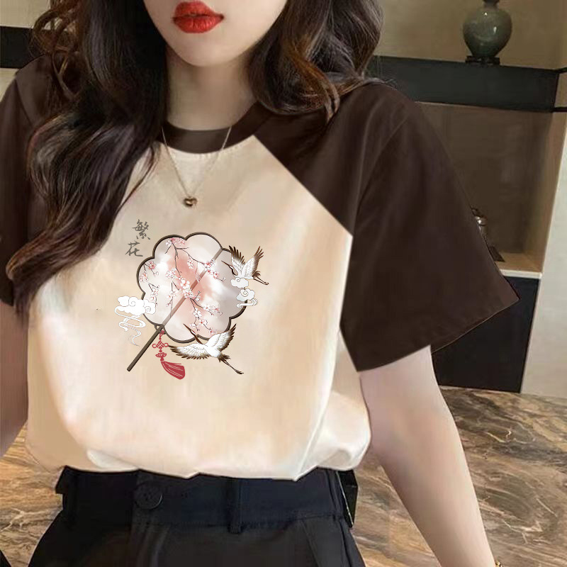 夏季新款新中式国风短袖女纯棉插肩t恤半袖撞色高级感上衣服