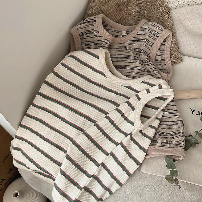 男女童夏装背心T恤宝宝洋气儿童个性潮网红复古森系条纹无袖上衣