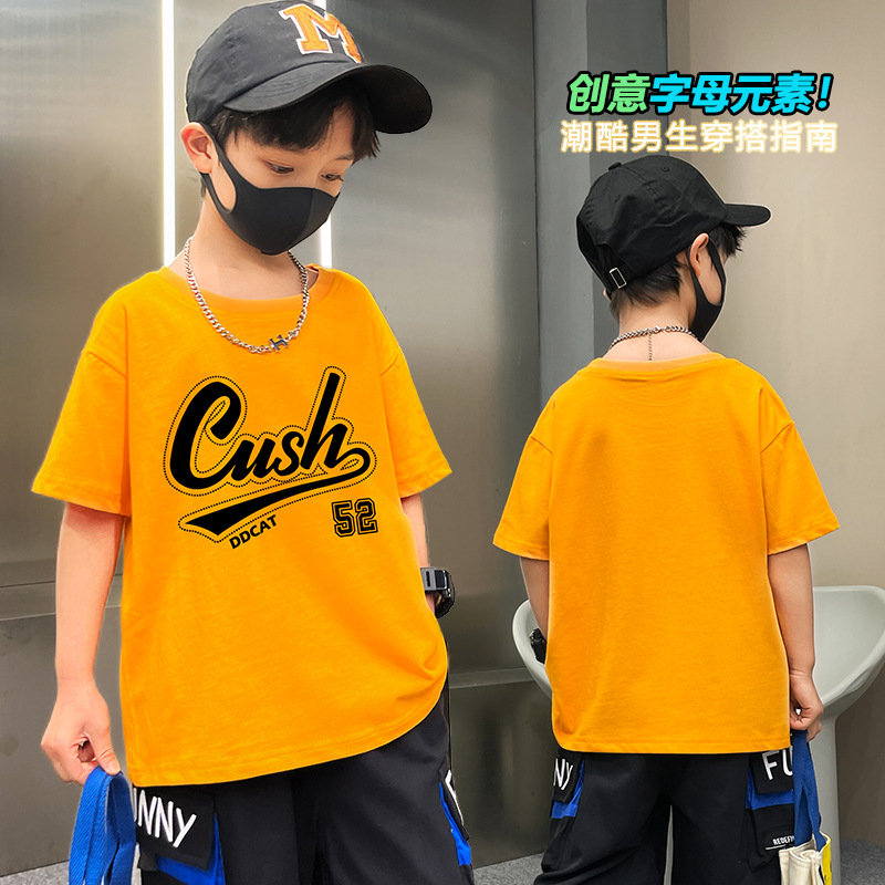 童装男女短袖t恤含棉圆领字母INs夏季新款儿童宝宝半袖上衣中小童