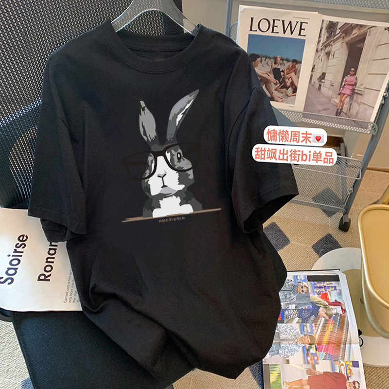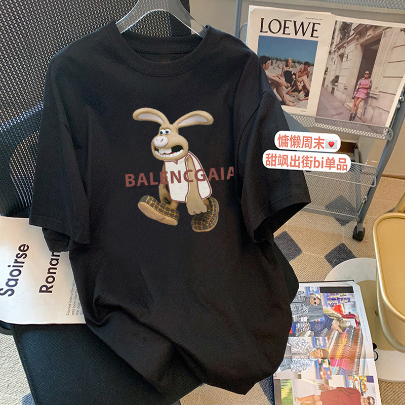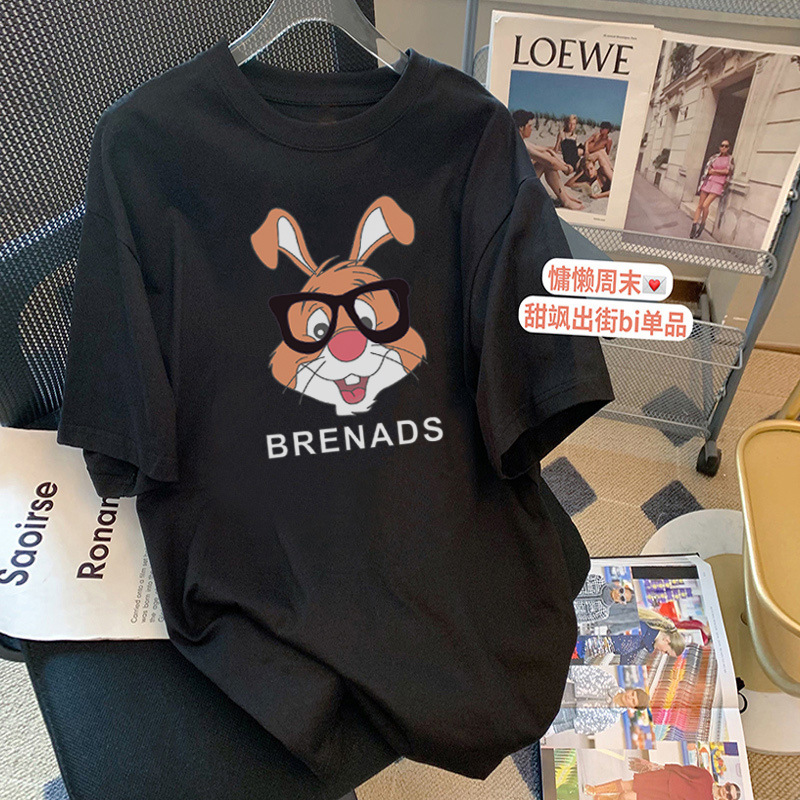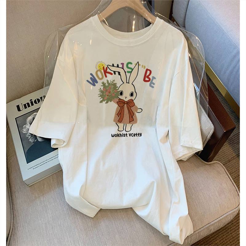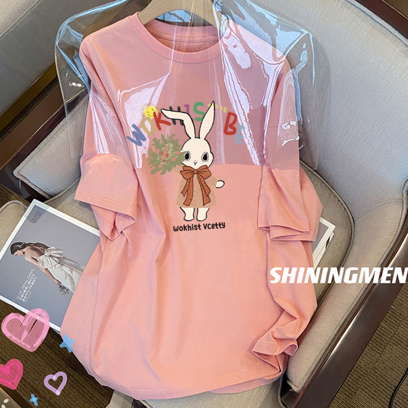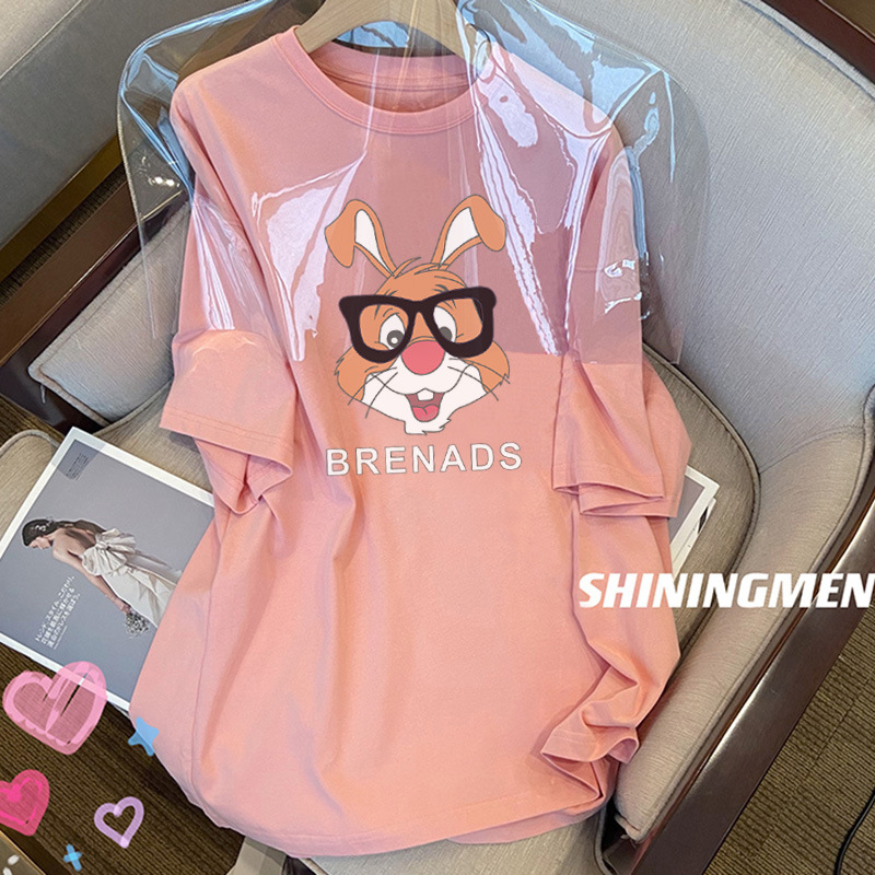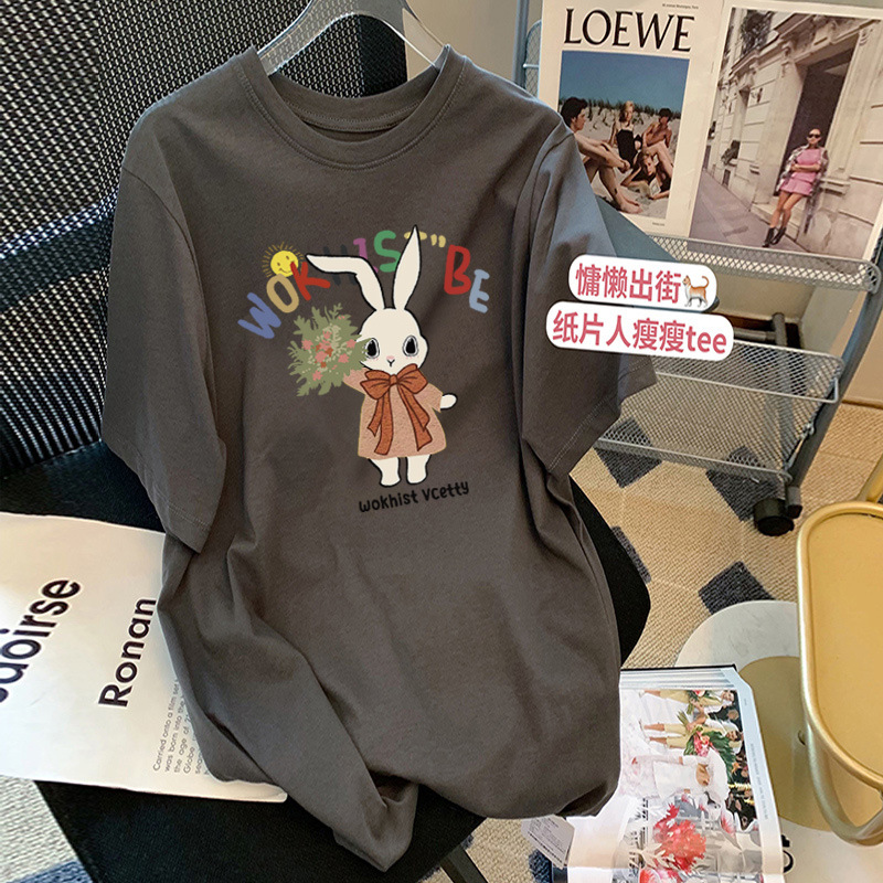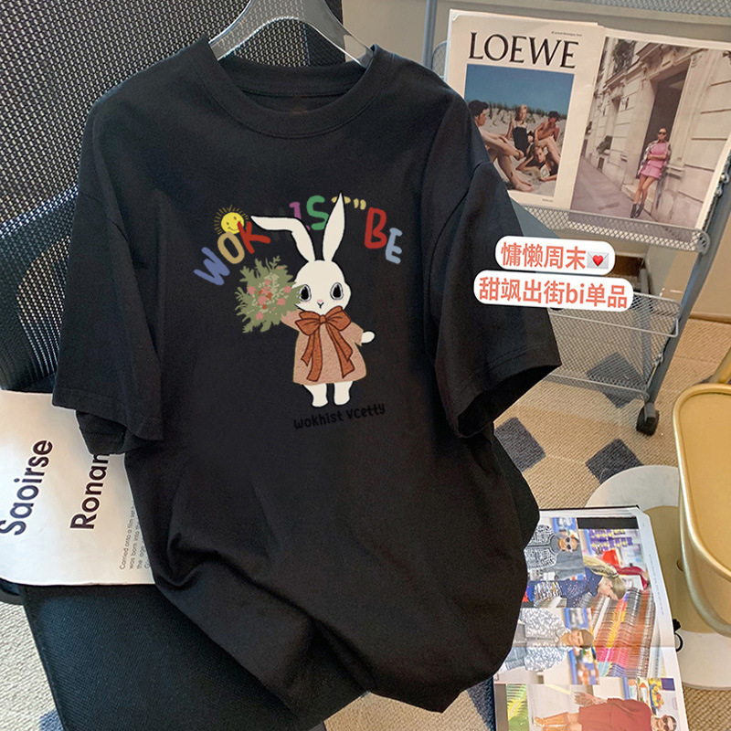 新款纯棉短袖T恤女韩版宽松休闲中长款时尚百搭减龄上衣夏季