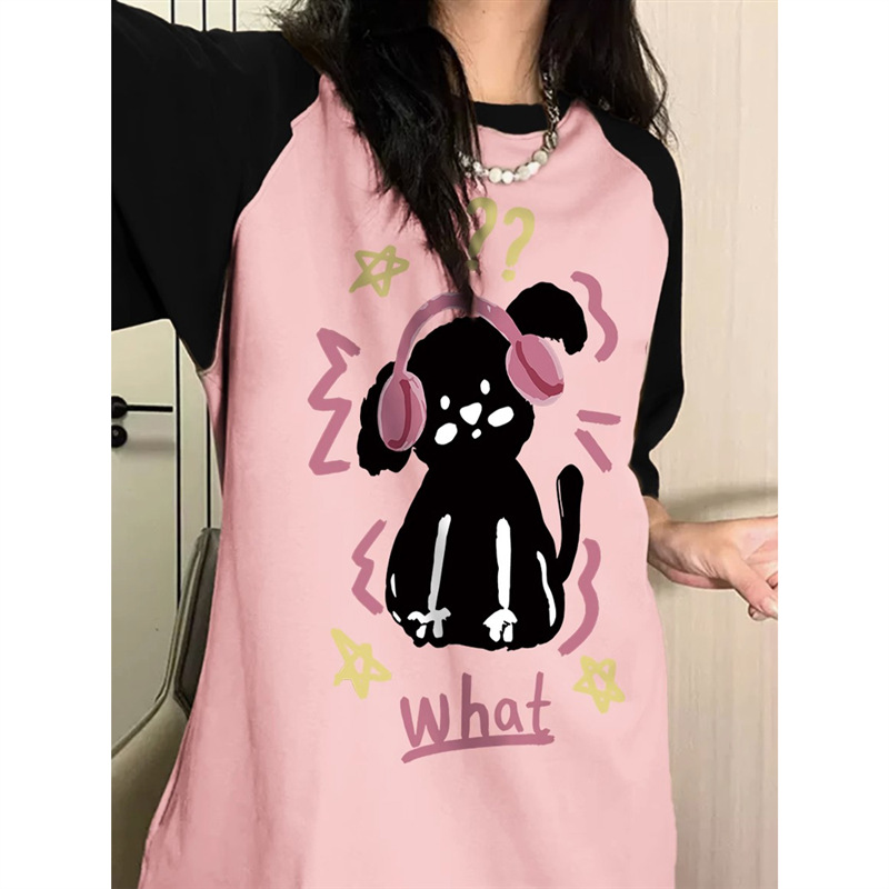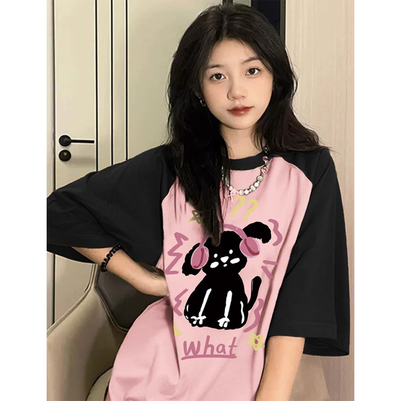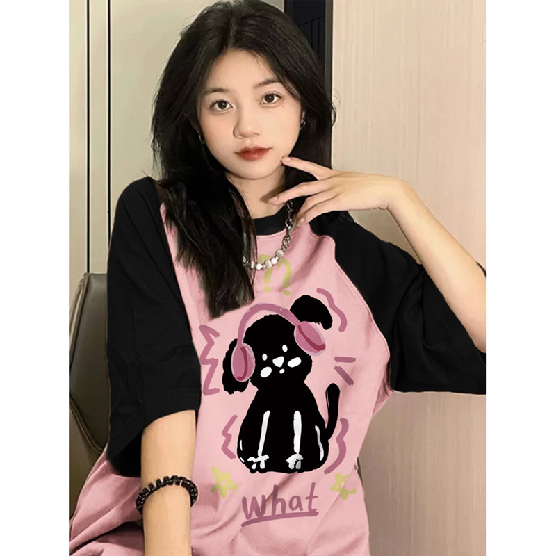 韩版夏季新款卡通字母印花圆领休闲宽松情侣短袖男女潮DT048