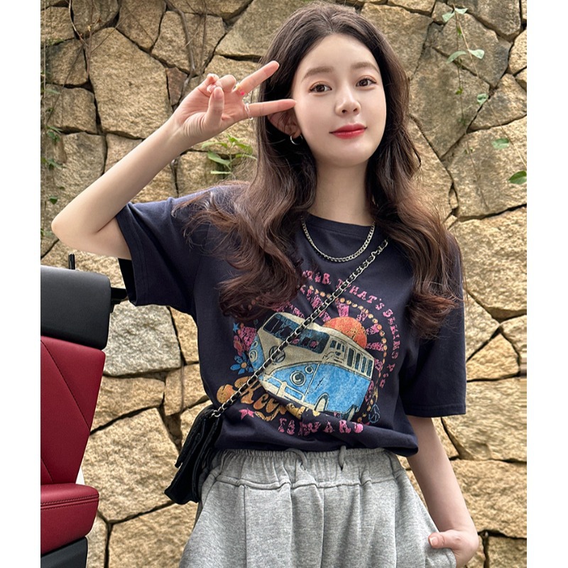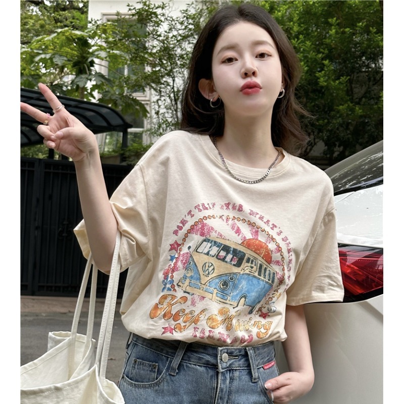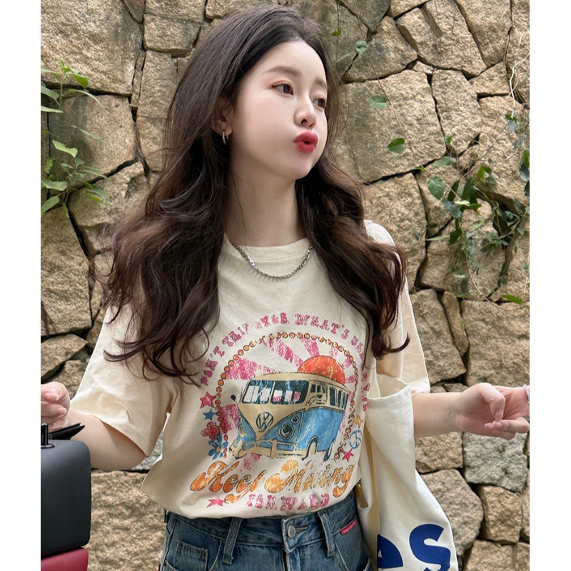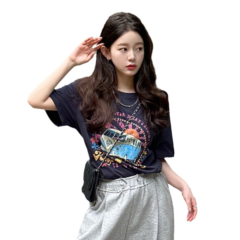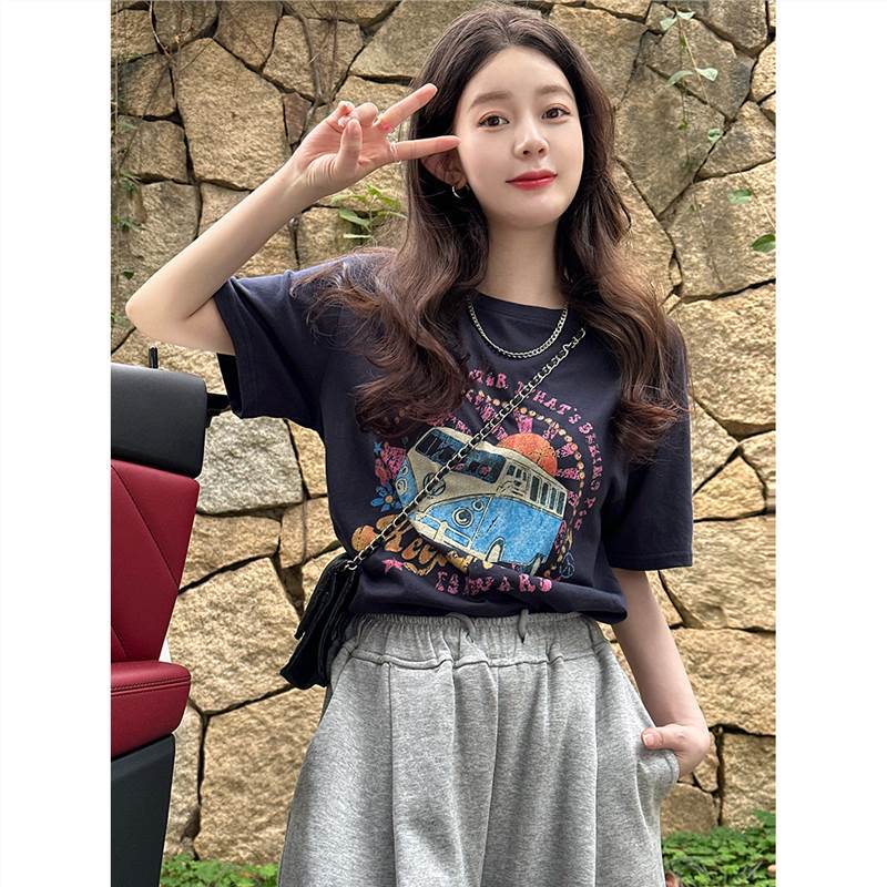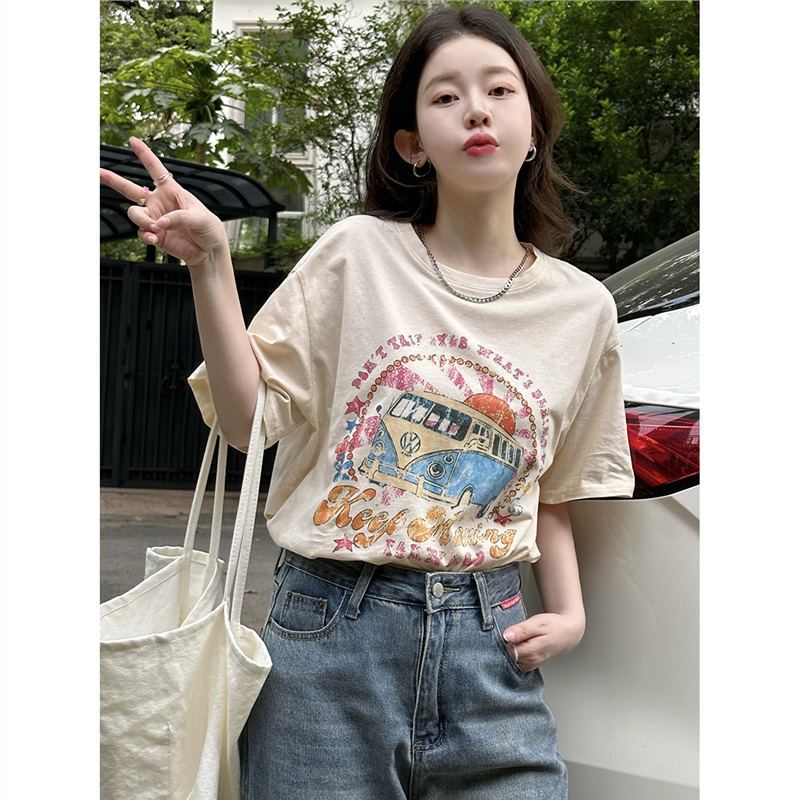 设计感卡通印花正肩短袖t恤女夏季小众宽松显瘦半袖港味chic上衣