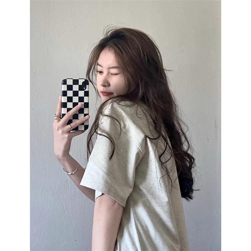后背开叉小心机韩版中长款纯棉短袖大T恤女新款小众设计感