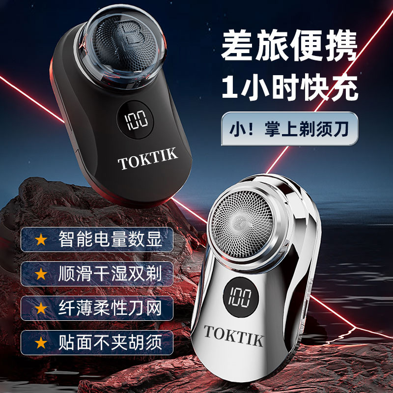 TOKTIK爆款迷你电动剃须刀数显防水洗旅行便携刮胡刀男士家用胡须