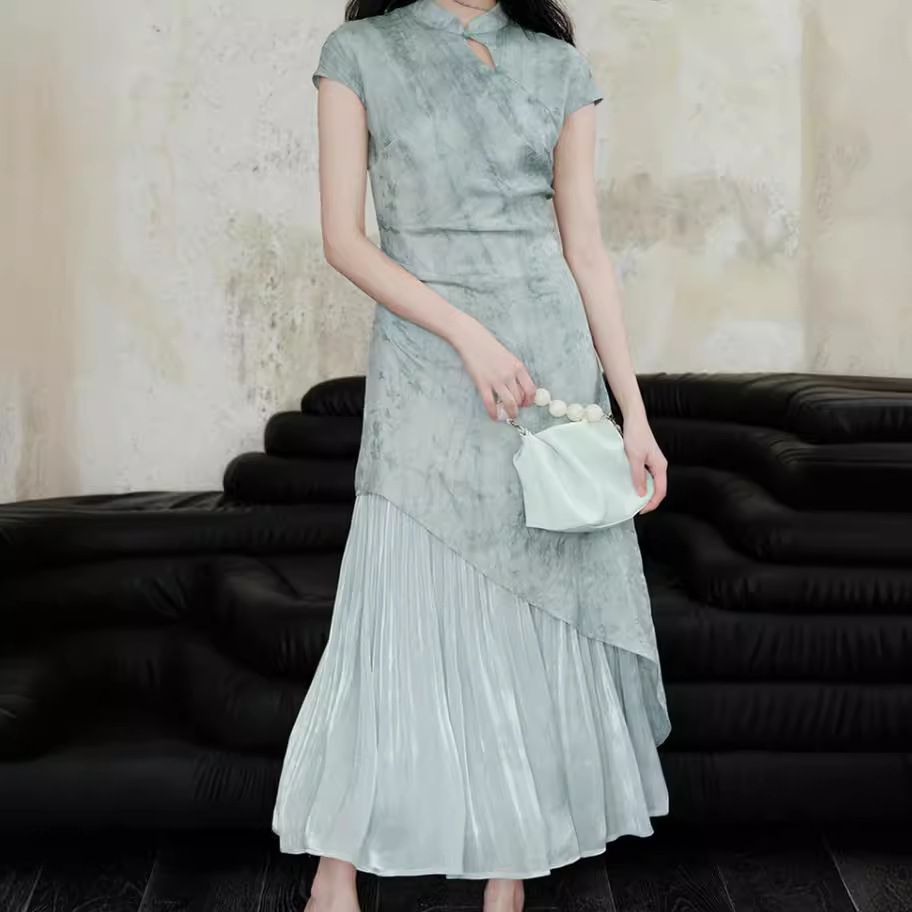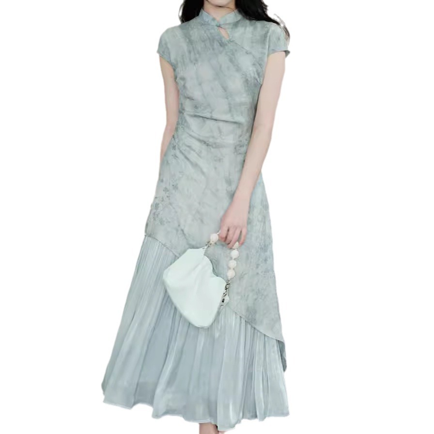 新品气质显瘦温柔舒适小众国风新中式天丝晕染提花旗袍连衣裙