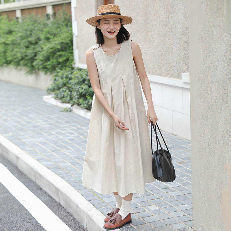 日系设计感小个子无袖森系百褶裙女夏新款宽松显瘦连衣裙