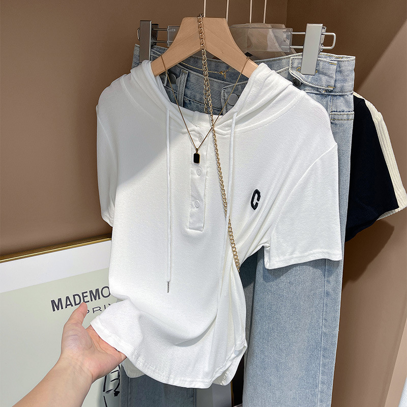 设计感连帽T恤女短袖夏季新款ins帽衫修身显瘦短款体桖上衣