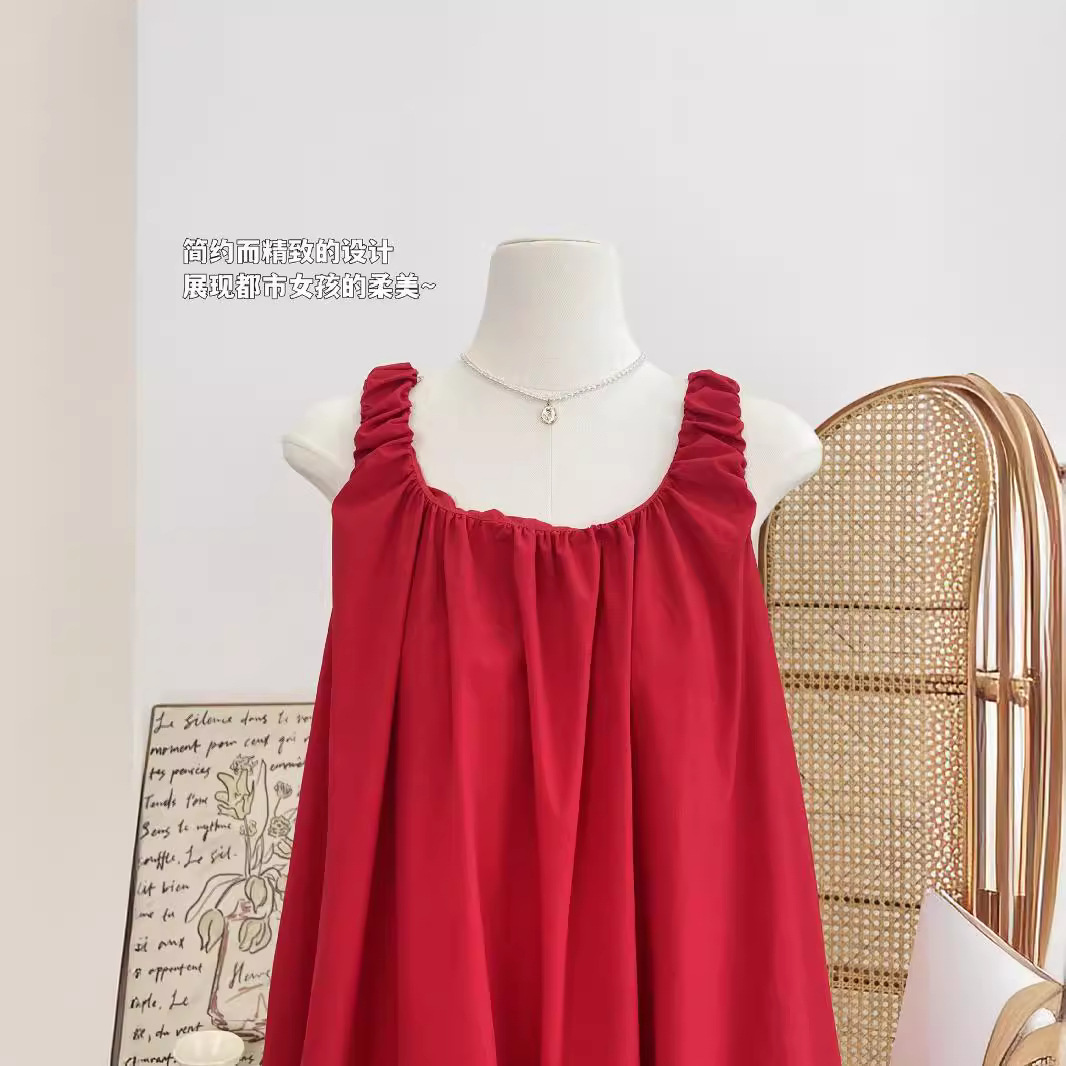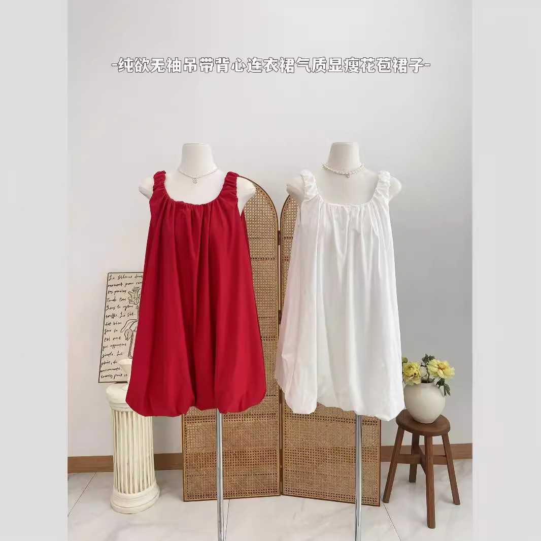 纯欲无袖小众温柔舒适吊带背心连衣裙女夏季气质显瘦短款花苞裙子