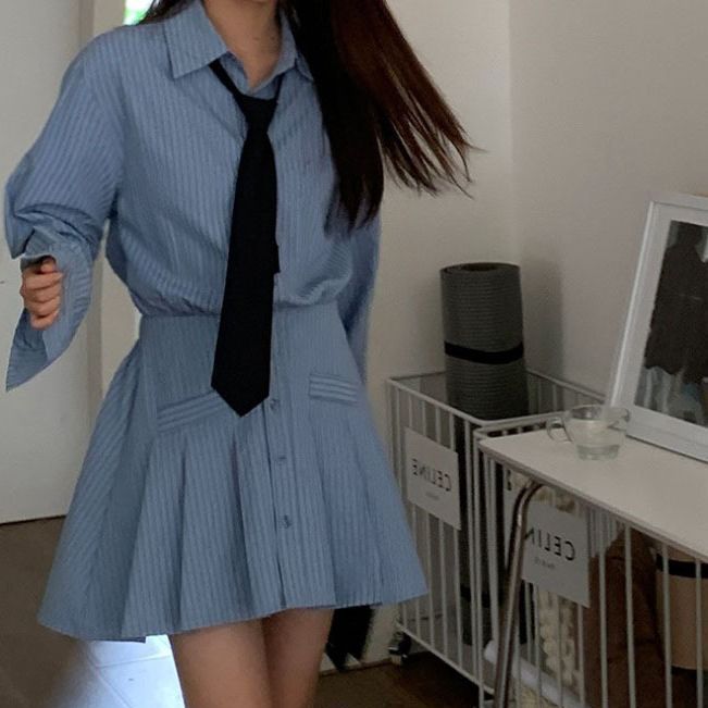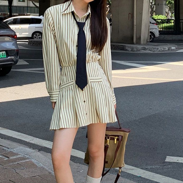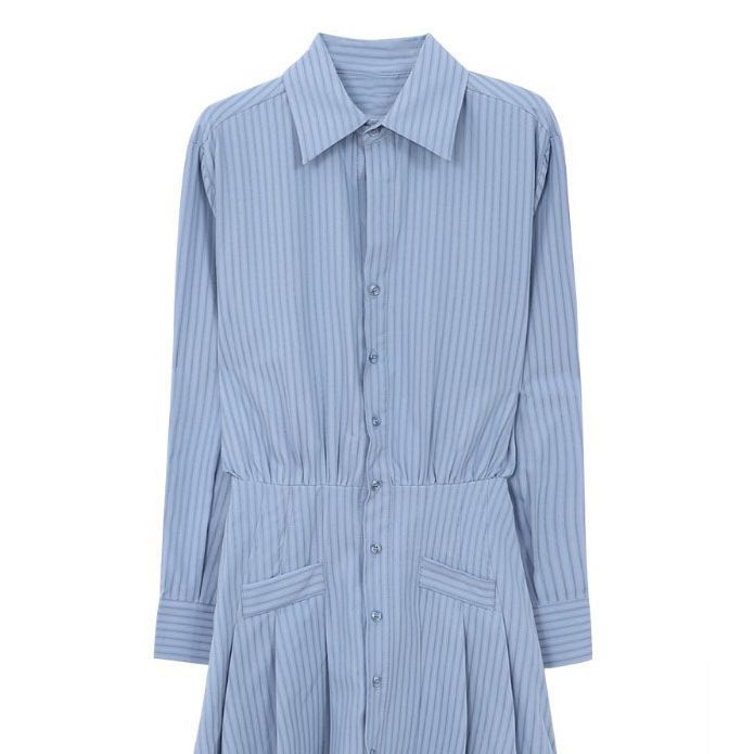 条纹衬衫连衣裙女早秋新款法式收腰显瘦高级感气质长袖裙子