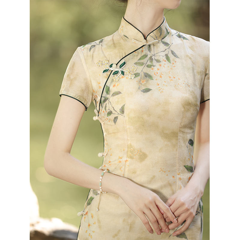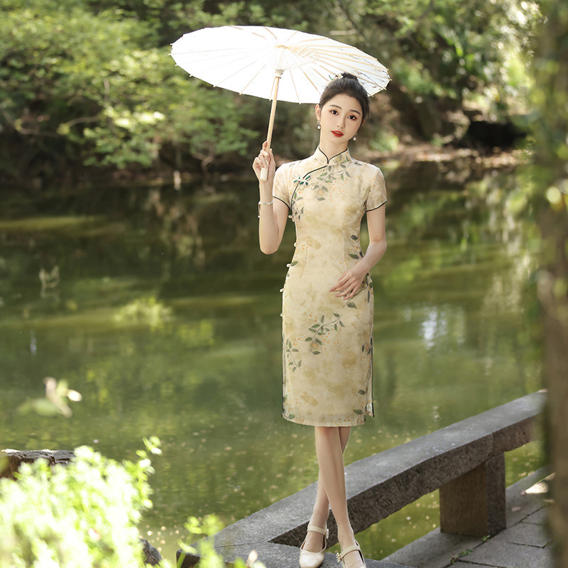 黄色改良旗袍夏新款高端年轻款少女新中式国风送考日常小个子