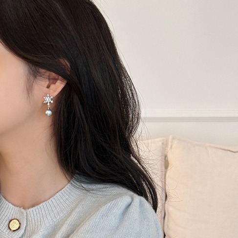 冬季圣诞微镶雪花珍珠耳环S925银针施家灰色珍珠耳坠精致高级感