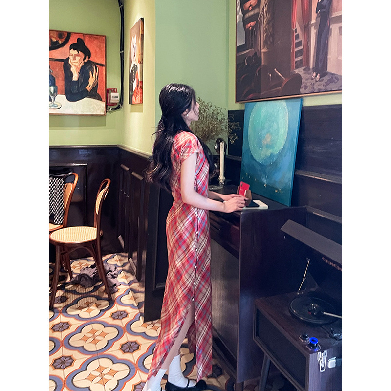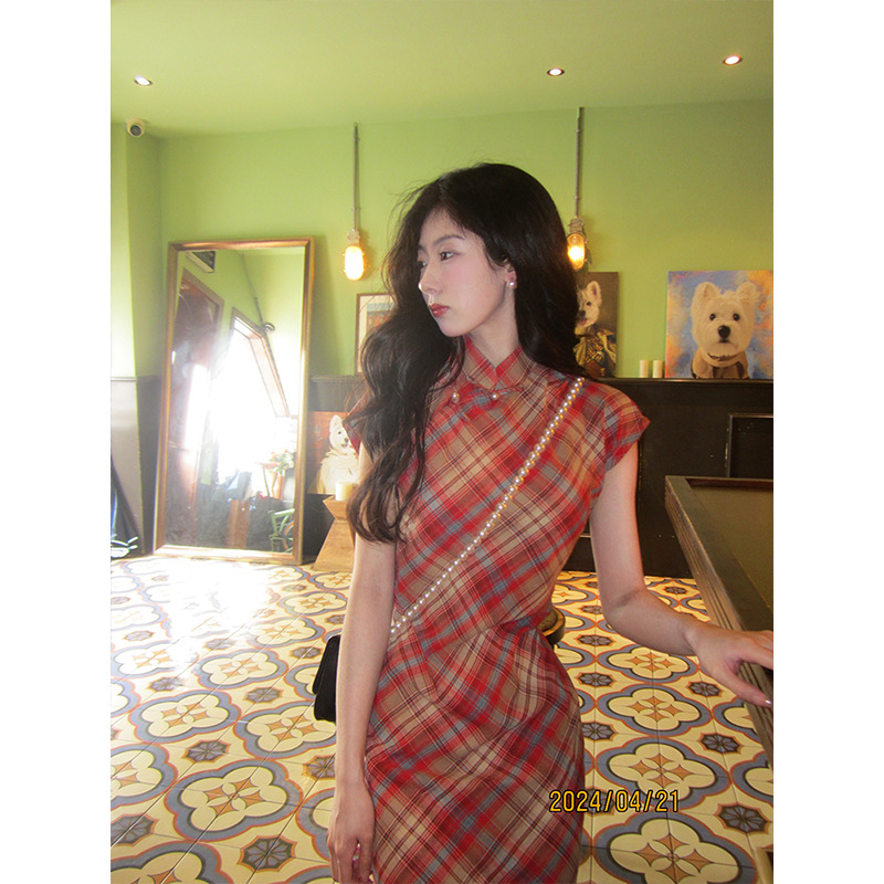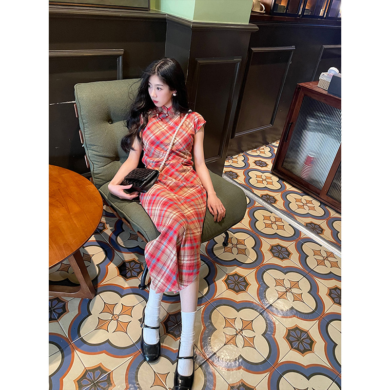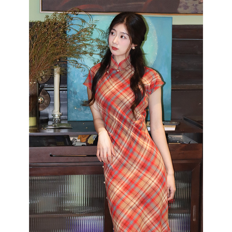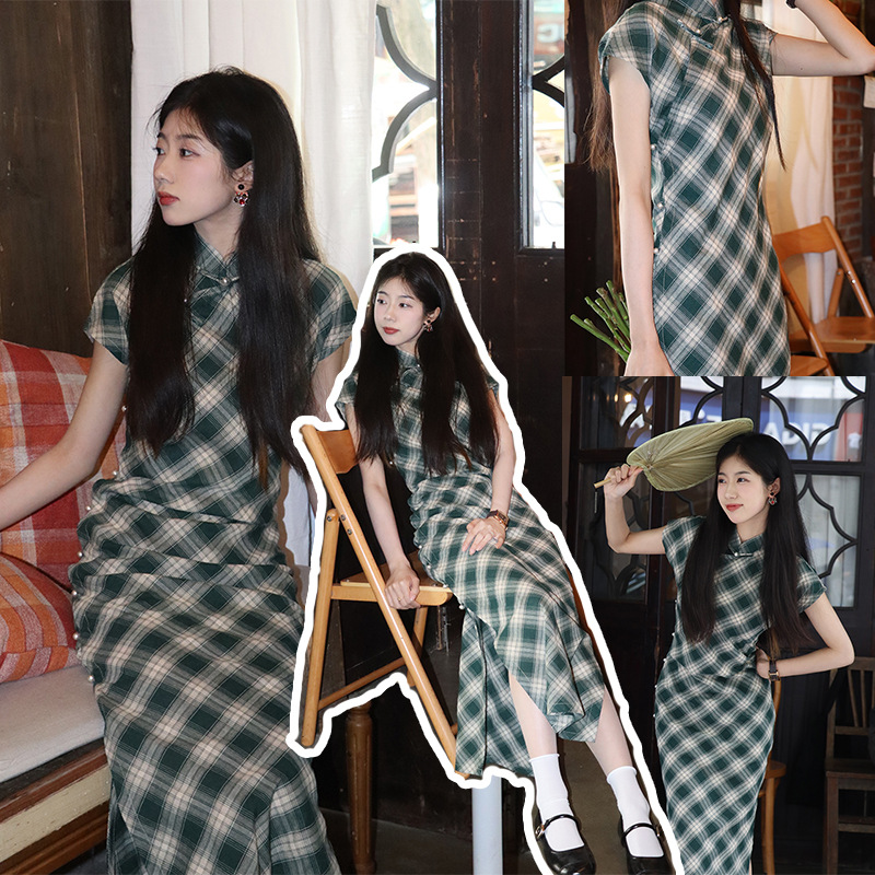 蜜糖古法旗袍新款格子日常夏季年轻款新中式少女民国复古文艺