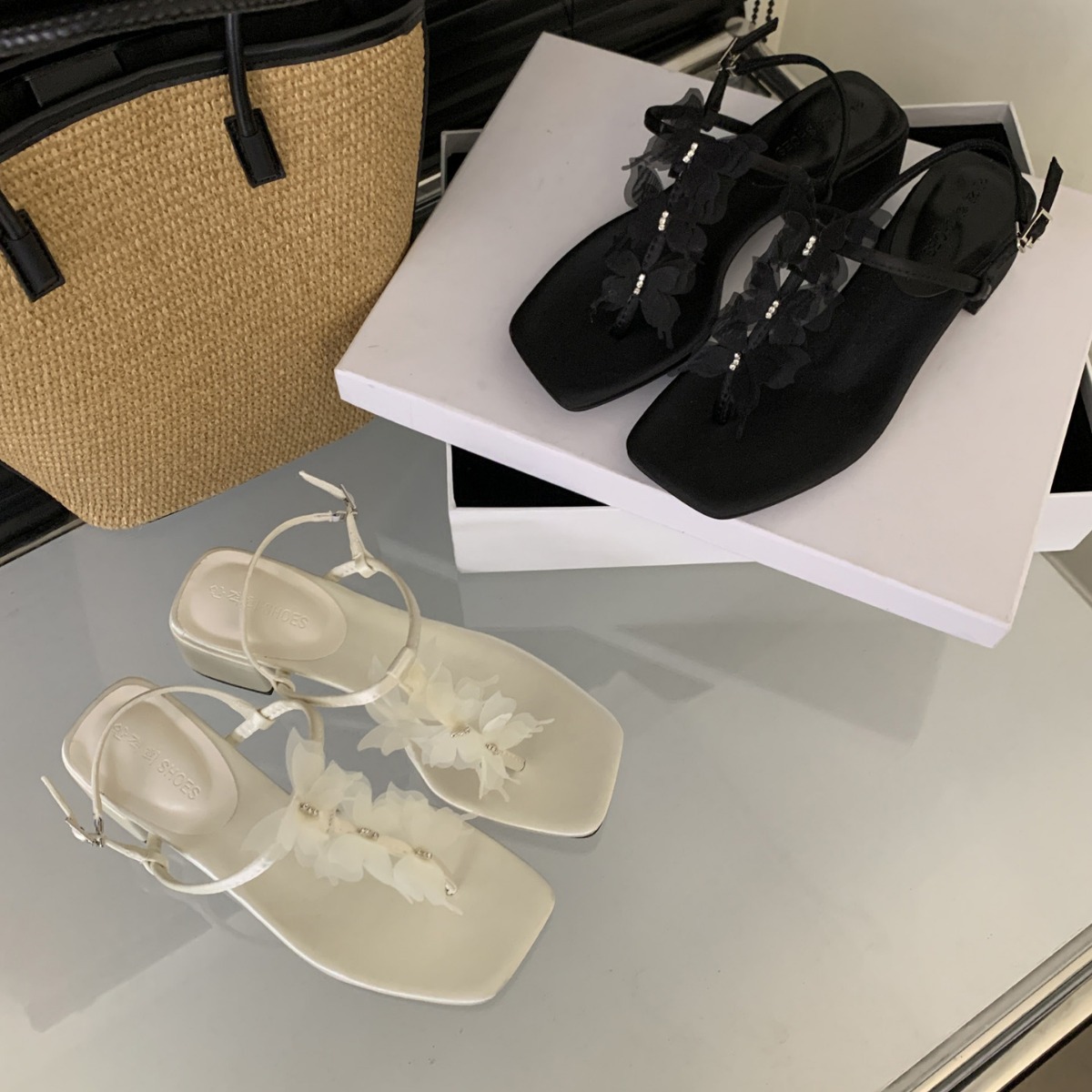 丝面蝴蝶结甜美配裙子鞋气质粗低跟一字扣带凉鞋女夏新凉拖
