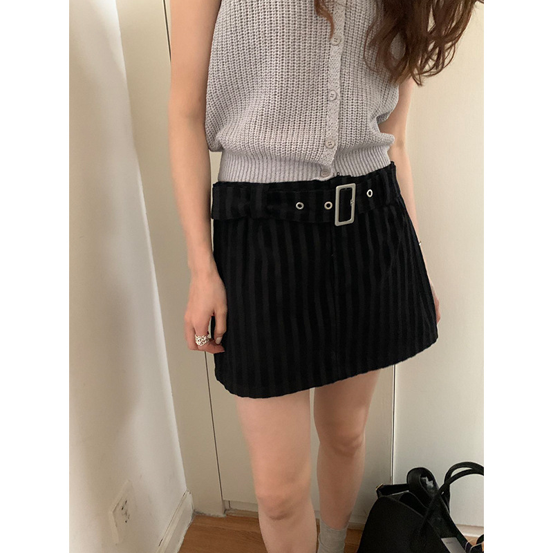 夏季新款辣妹条纹短裙复古肌理感A字半身裙子