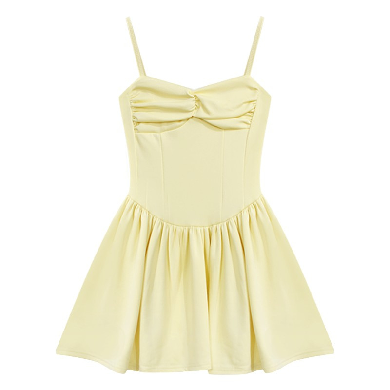 纯欲性感一字肩褶皱A字裙女夏季新款辣妹收腰显瘦吊带连衣裙