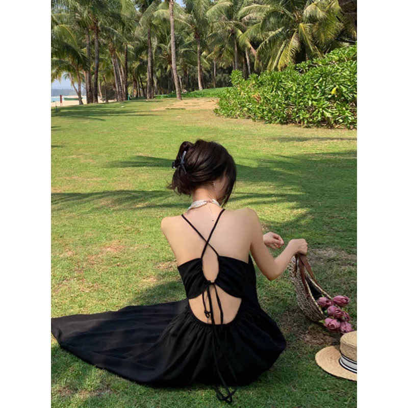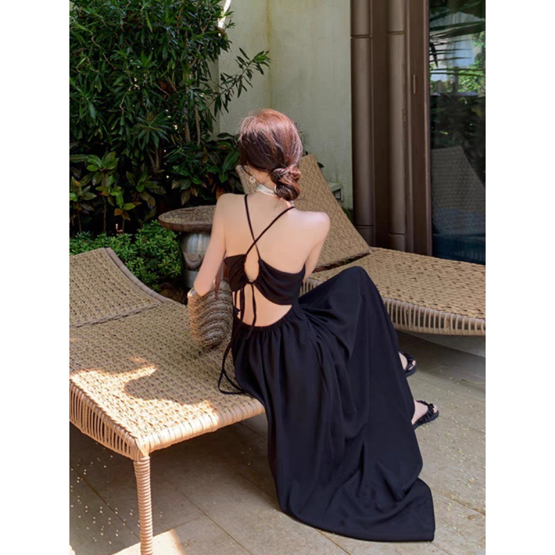 沙滩裙子质感高级感茶歇法式赫本风海边度假挂脖连衣裙女夏季新款