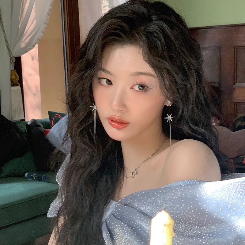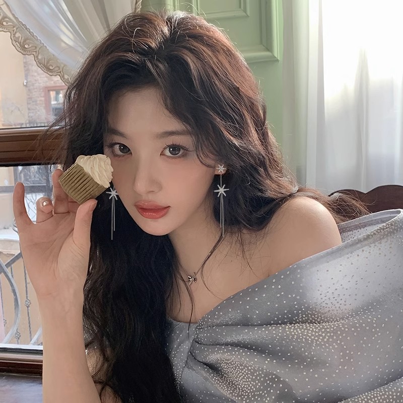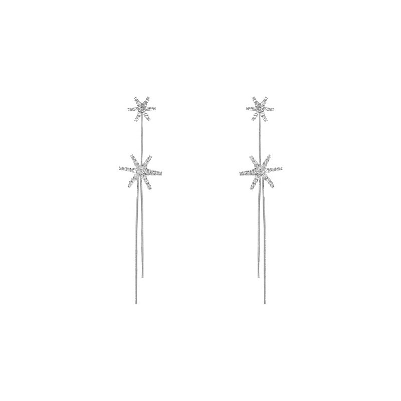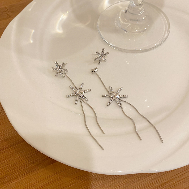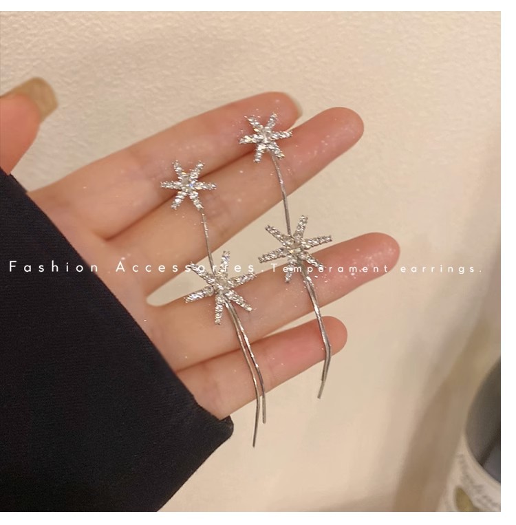 925银针个性长款流苏雪花耳环女小众高级感耳钉气质显脸瘦耳饰