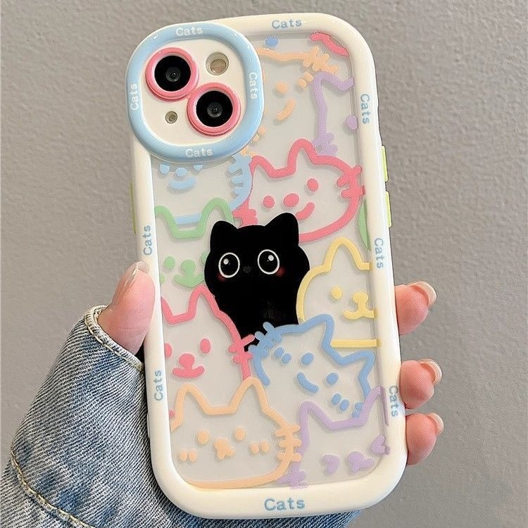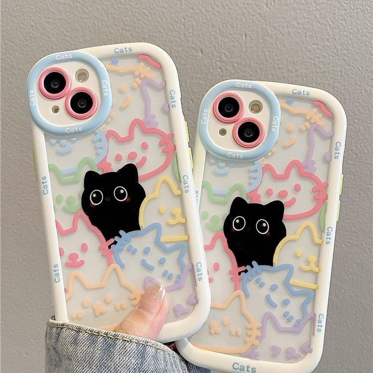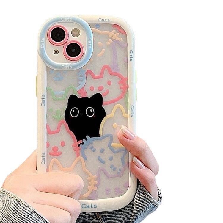 潮款黑色猫咪iPhone15/14ProMax手机壳13苹果12/11全包XS/XR/X软