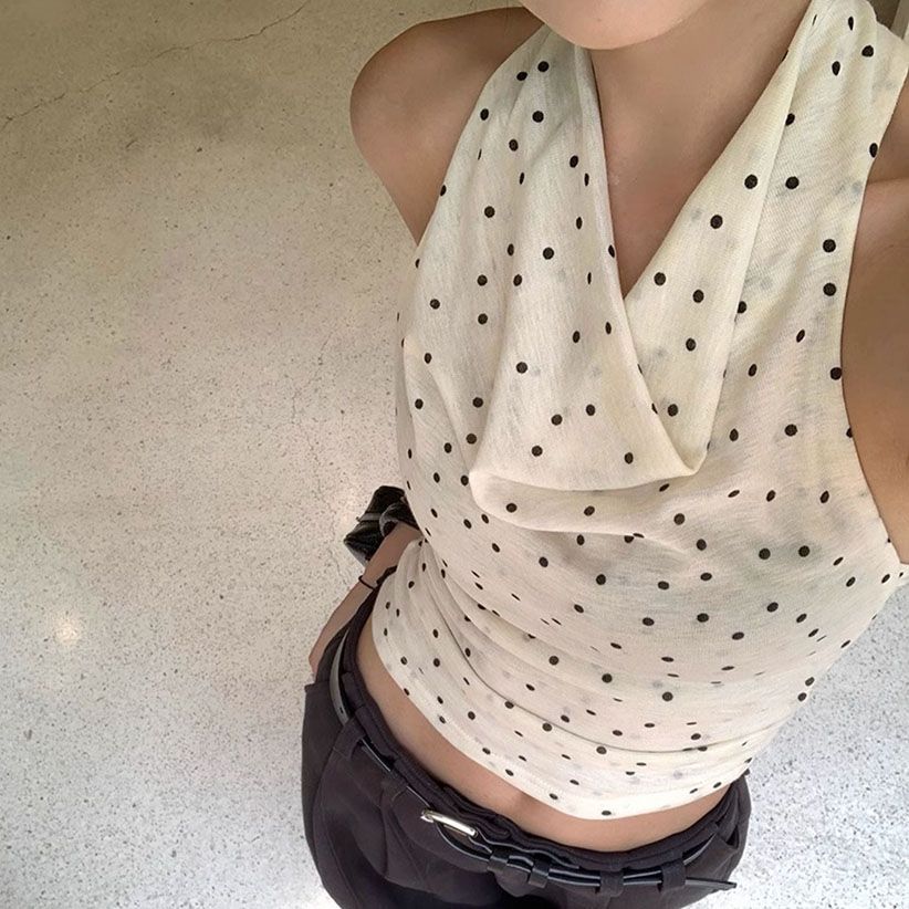 【跨境批发】纯欲风波点无袖挂脖露肩吊带背心女外穿美背甜辣上衣