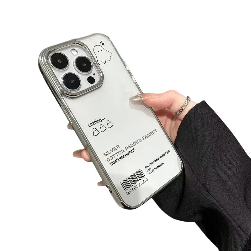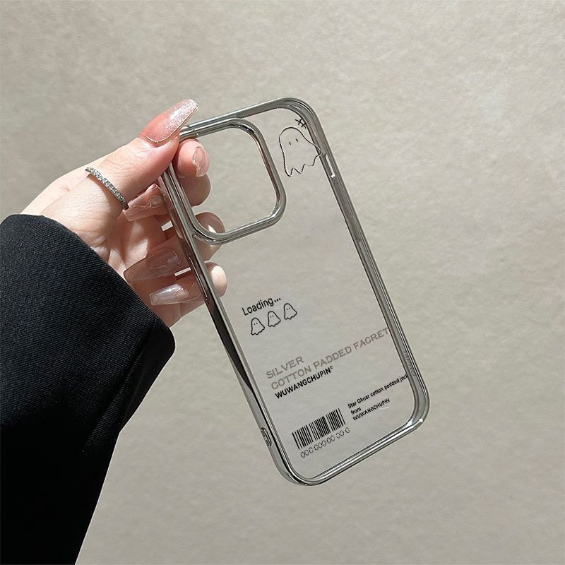 电镀银框英文小幽灵适用苹果15promax手机壳iPhone14/13/12透明11