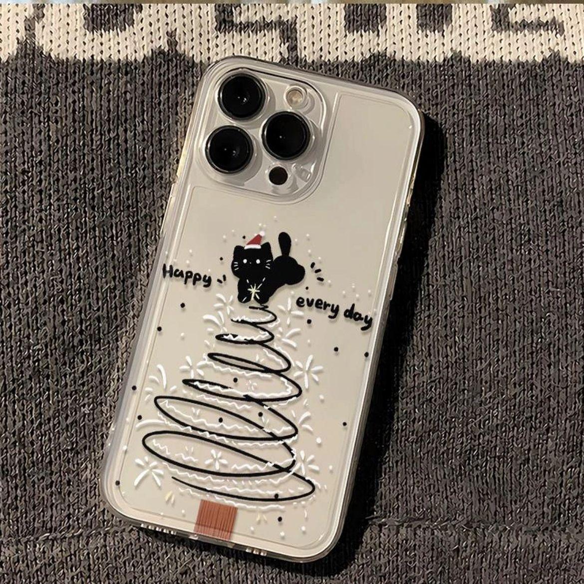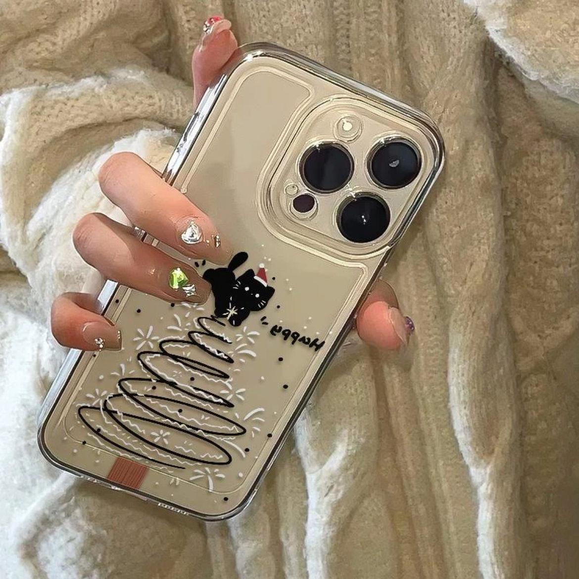 圣诞猫咪适用苹果15PROMAX手机壳iPhone14圣诞树13网红12防摔11软