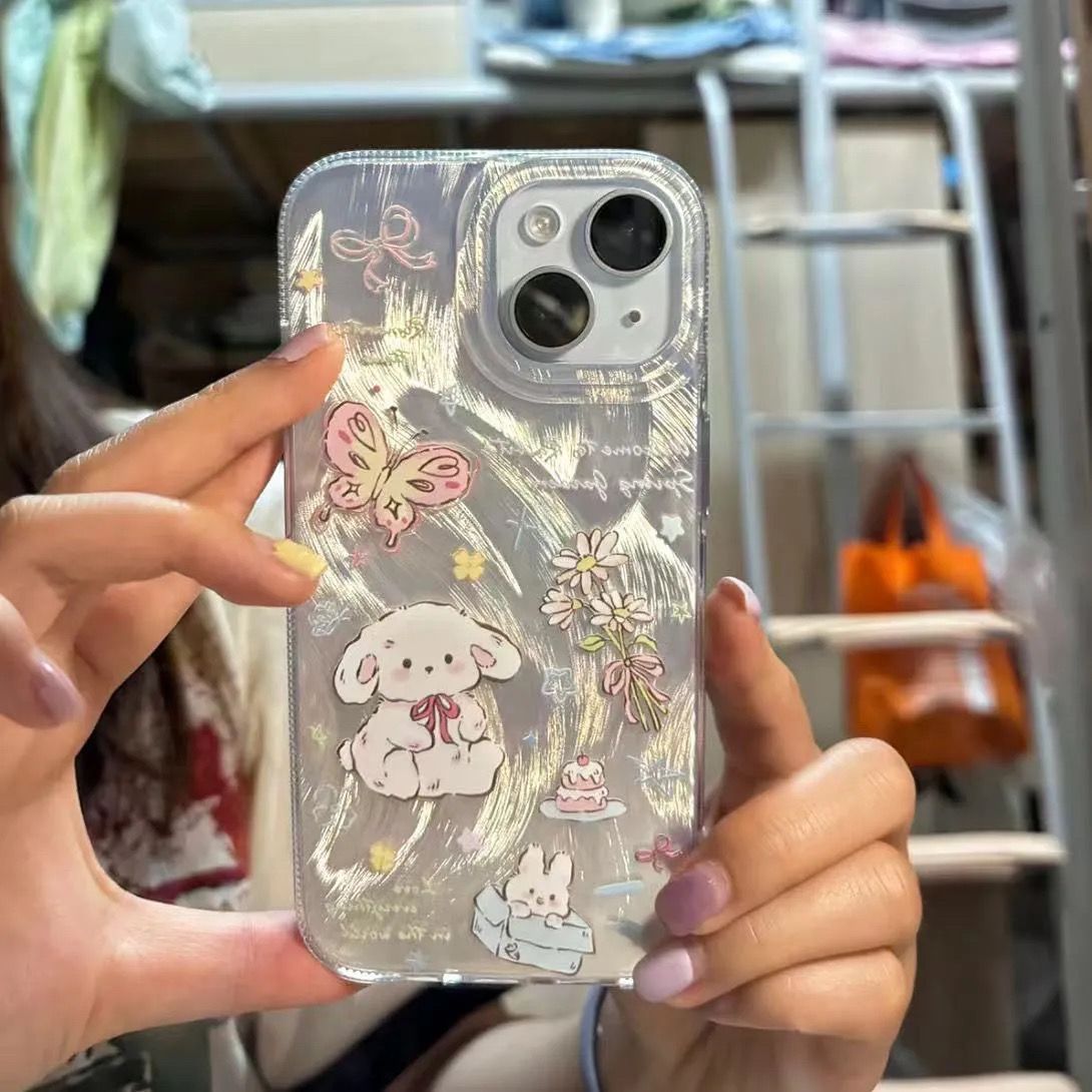 羽纱ins风花朵兔兔15PROMAX苹果手机壳iPhone14小清新13软萌12软x