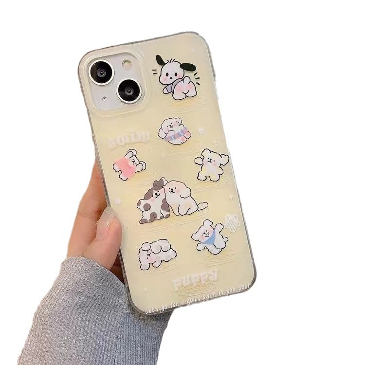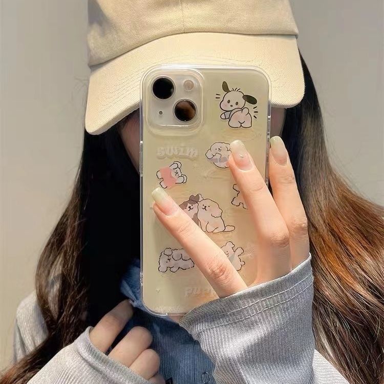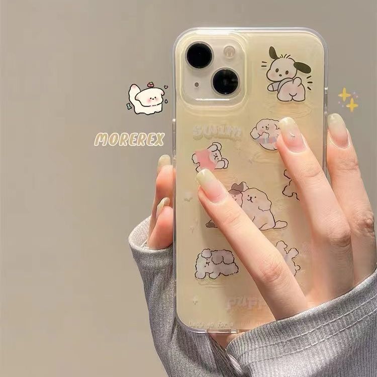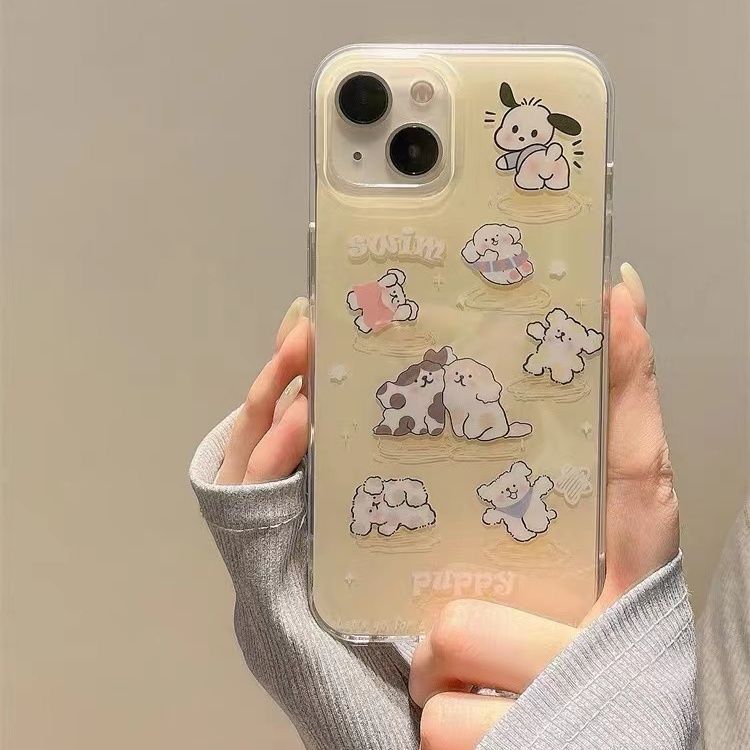 ins卡通可爱迷你小狗适用苹果14ProMax手机壳创意iPhone15新款12