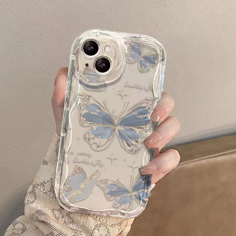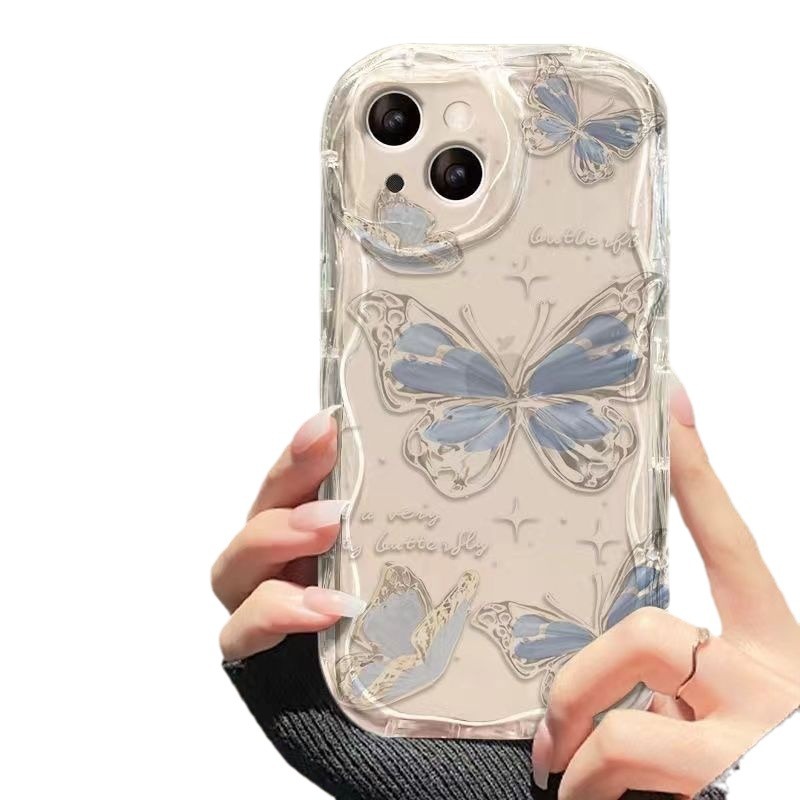 蓝色蝴蝶iPhone15/14ProMax手机壳苹果13/12/11全包XS/XR/X软壳