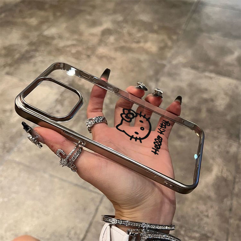 新款黑色线条凯蒂适用于苹果15/14/13promax手机壳12/11软xr/xs防